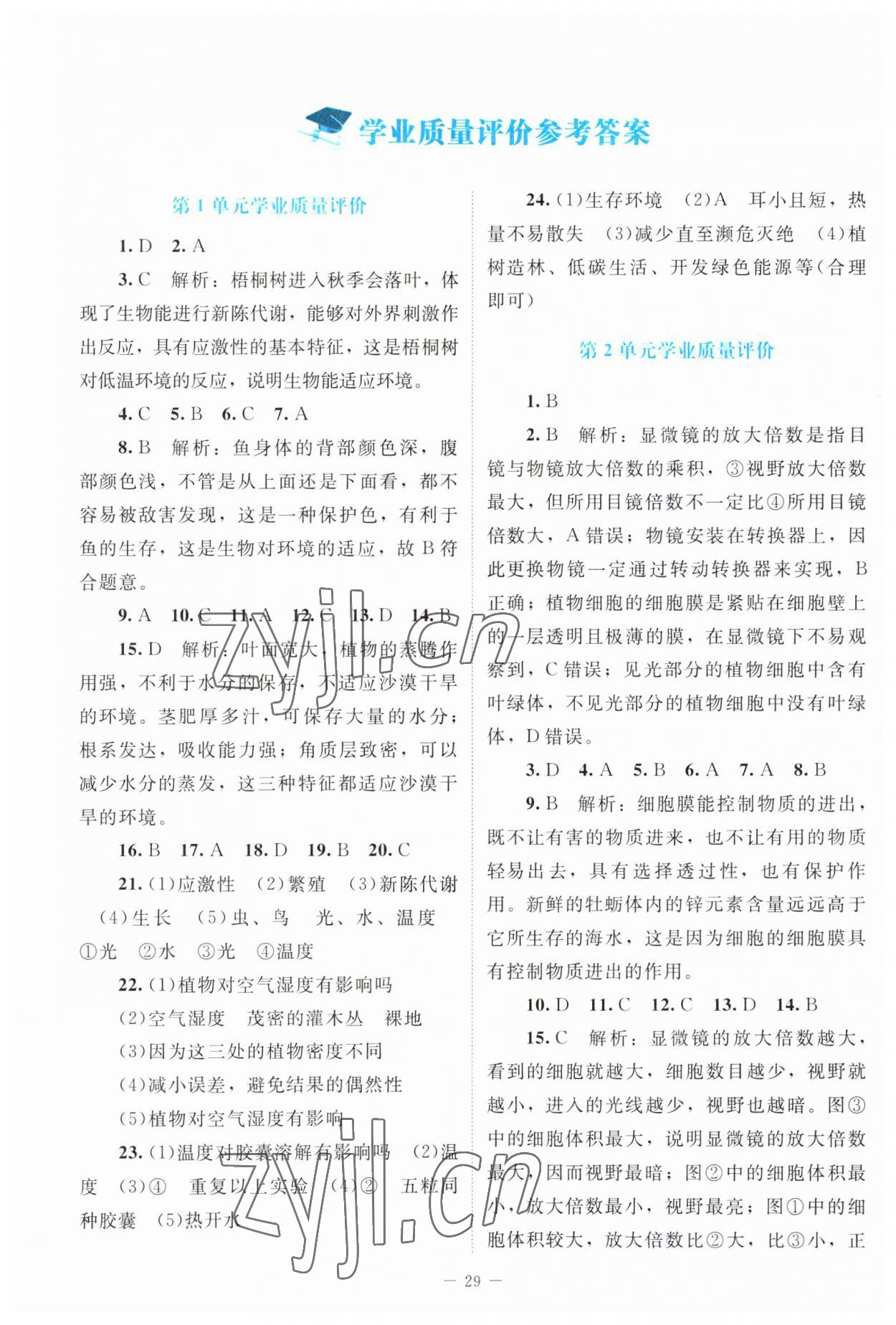 注:目前有些书本章节名称可能整理的还不是很完善,但都是按照顺序排列的,请同学们按照顺序仔细查找。练习册 2023年课堂精练七年级生物上册北师大版云南专版 答案主要是用来给同学们做完题方便对答案用的,请勿直接抄袭。