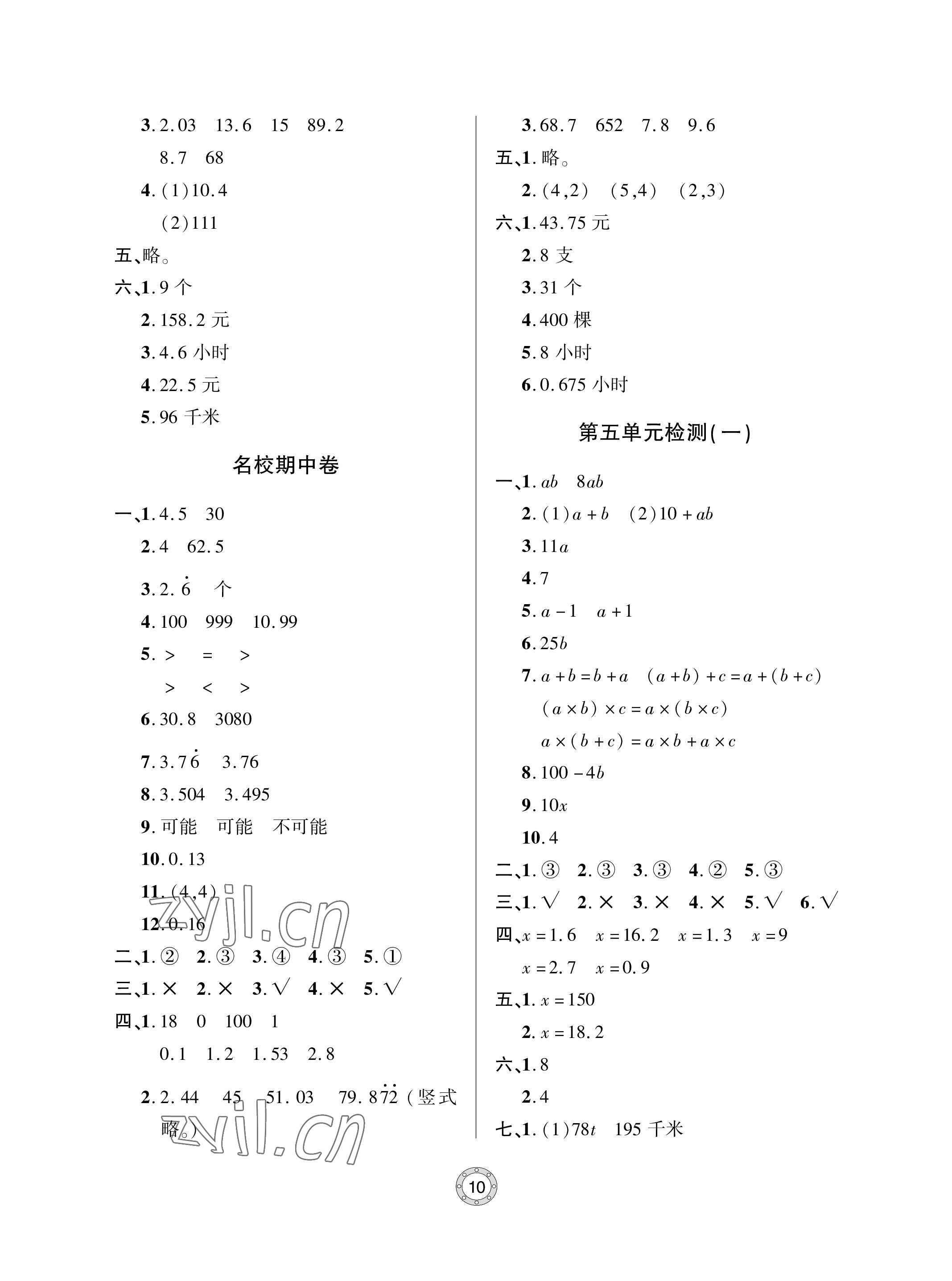 注:目前有些书本章节名称可能整理的还不是很完善,但都是按照顺序排列的,请同学们按照顺序仔细查找。练习册 2023年单元自测试卷青岛出版社五年级数学上册人教版 答案主要是用来给同学们做完题方便对答案用的,请勿直接抄袭。