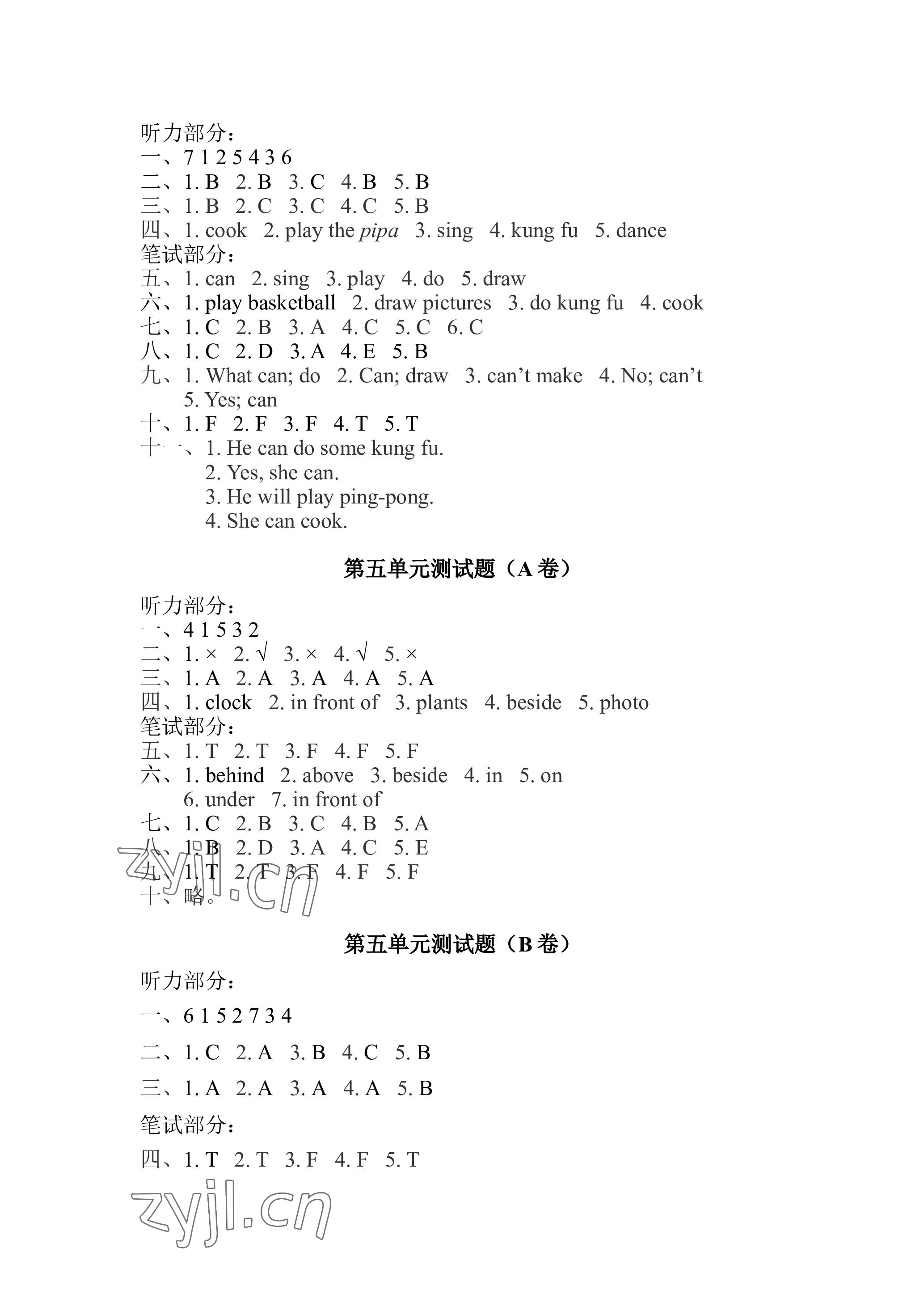 注:目前有些书本章节名称可能整理的还不是很完善,但都是按照顺序排列的,请同学们按照顺序仔细查找。练习册 2023年单元自测试卷青岛出版社五年级英语上册人教版 答案主要是用来给同学们做完题方便对答案用的,请勿直接抄袭。