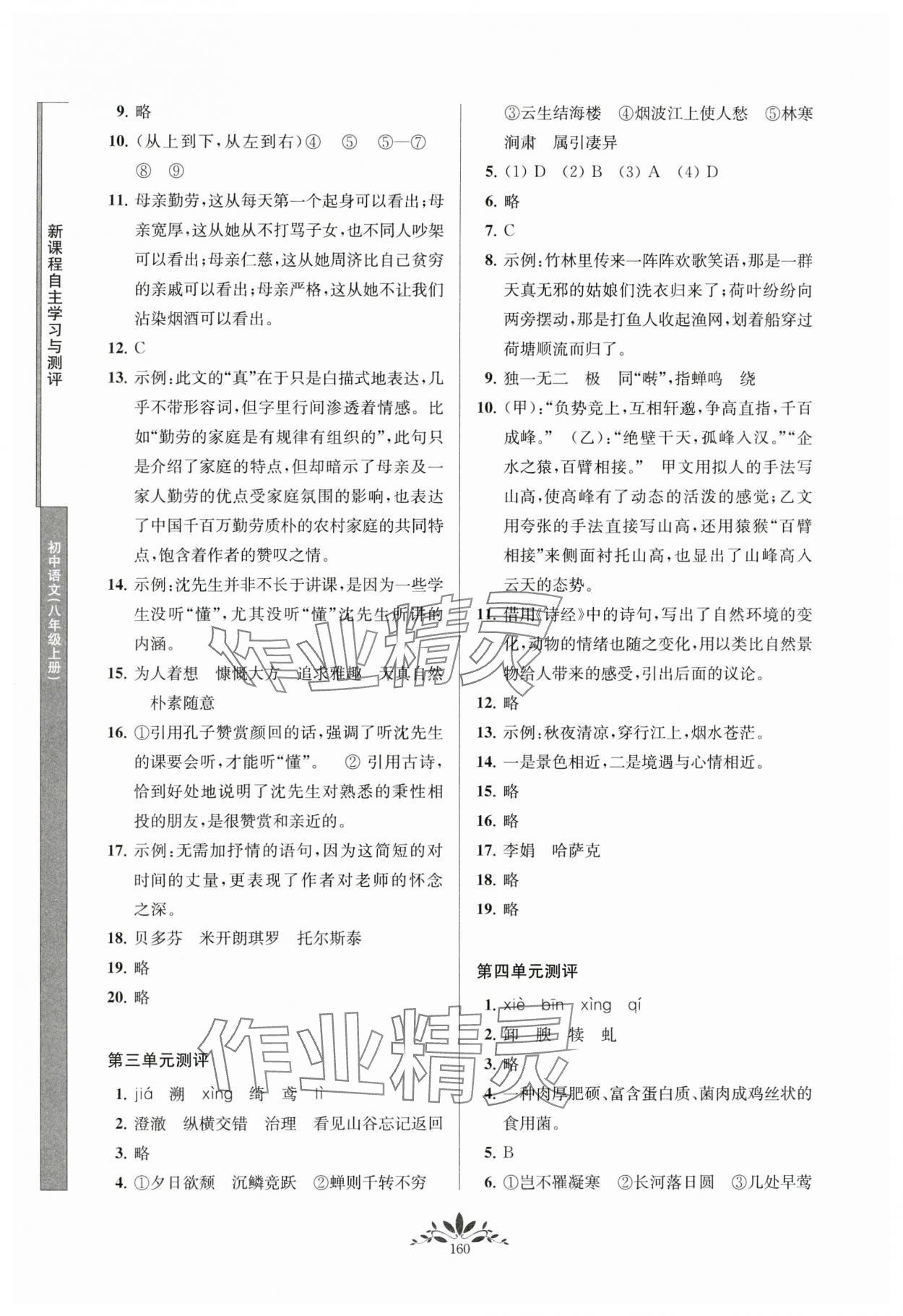 注:目前有些书本章节名称可能整理的还不是很完善,但都是按照顺序排列的,请同学们按照顺序仔细查找。练习册 2023年新课程自主学习与测评八年级语文上册人教版 答案主要是用来给同学们做完题方便对答案用的,请勿直接抄袭。