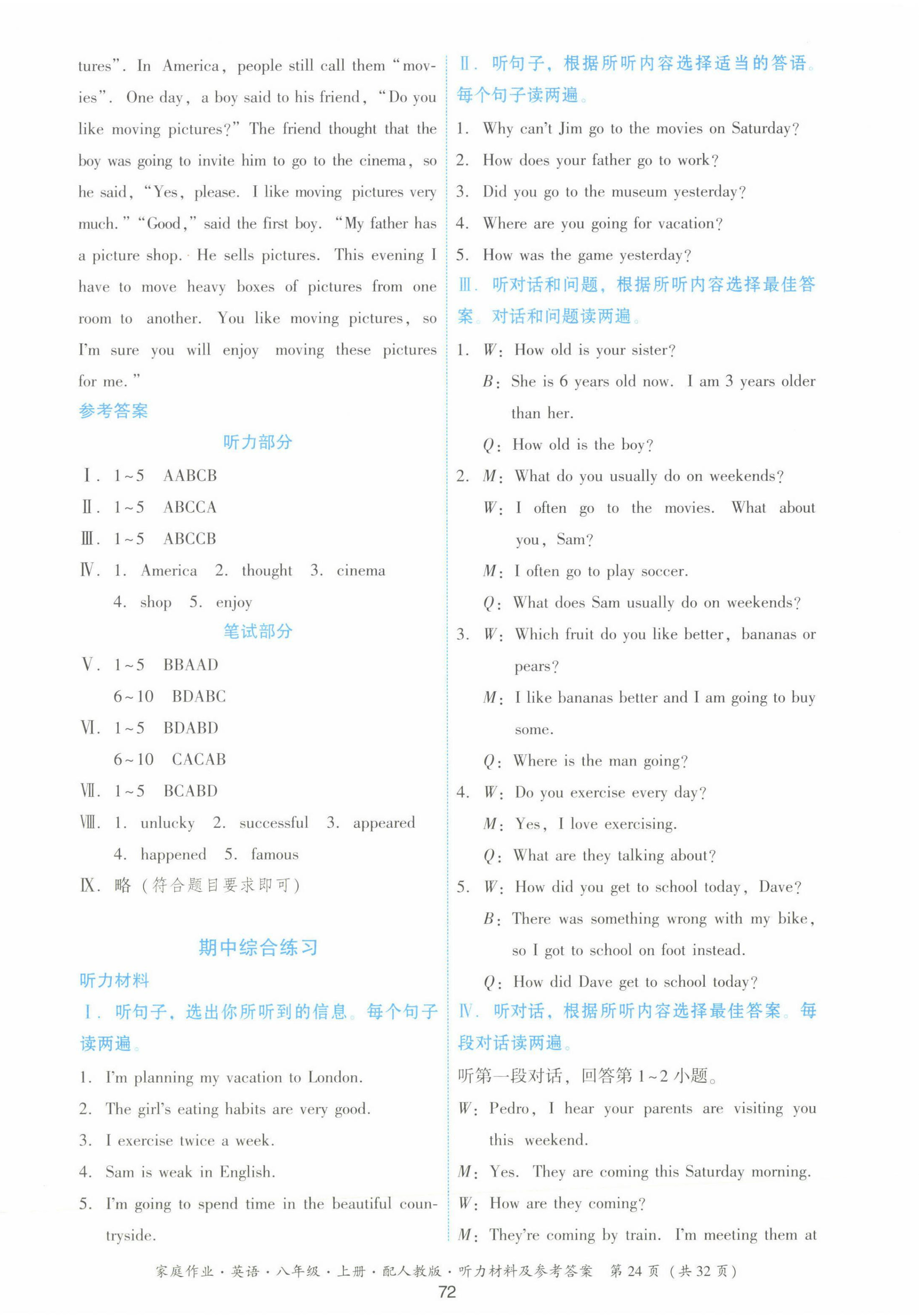 注:目前有些书本章节名称可能整理的还不是很完善,但都是按照顺序排列的,请同学们按照顺序仔细查找。练习册 2023年家庭作业八年级英语上册人教版 答案主要是用来给同学们做完题方便对答案用的,请勿直接抄袭。