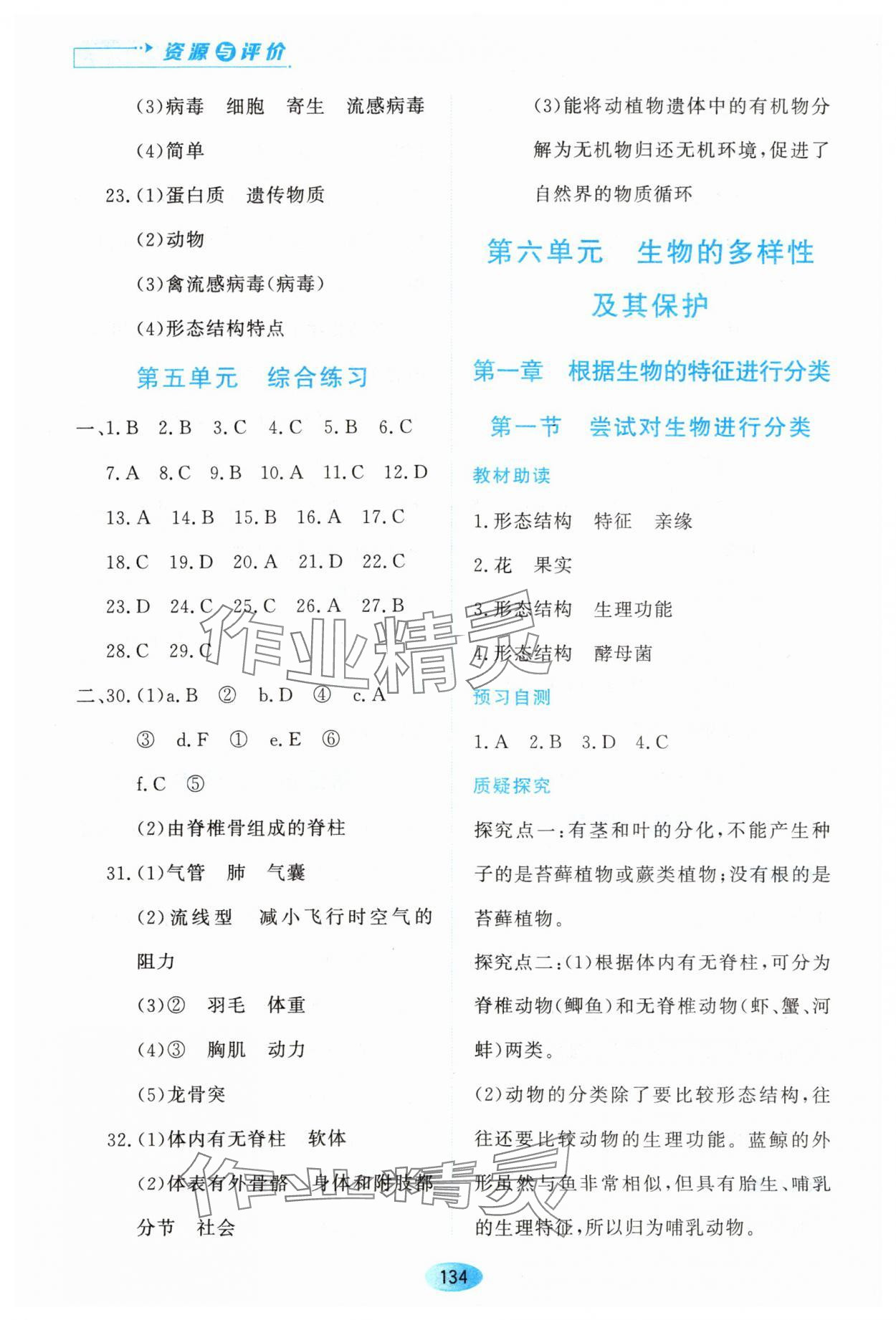 注:目前有些书本章节名称可能整理的还不是很完善,但都是按照顺序排列的,请同学们按照顺序仔细查找。练习册 2023年资源与评价黑龙江教育出版社八年级生物上册人教版大庆专版 答案主要是用来给同学们做完题方便对答案用的,请勿直接抄袭。