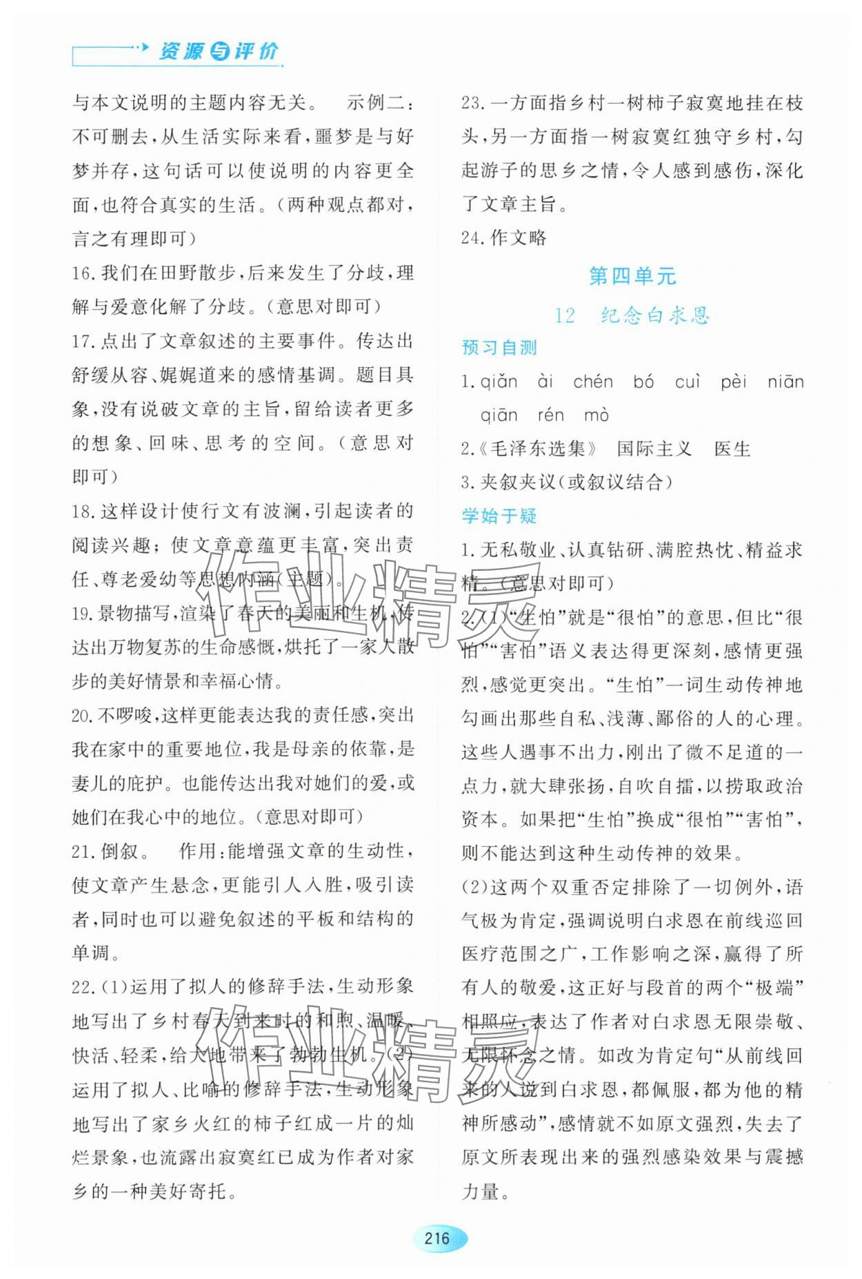 《2023年资源与评价黑龙江教育出版社七年级语文上册人教版大庆专版》