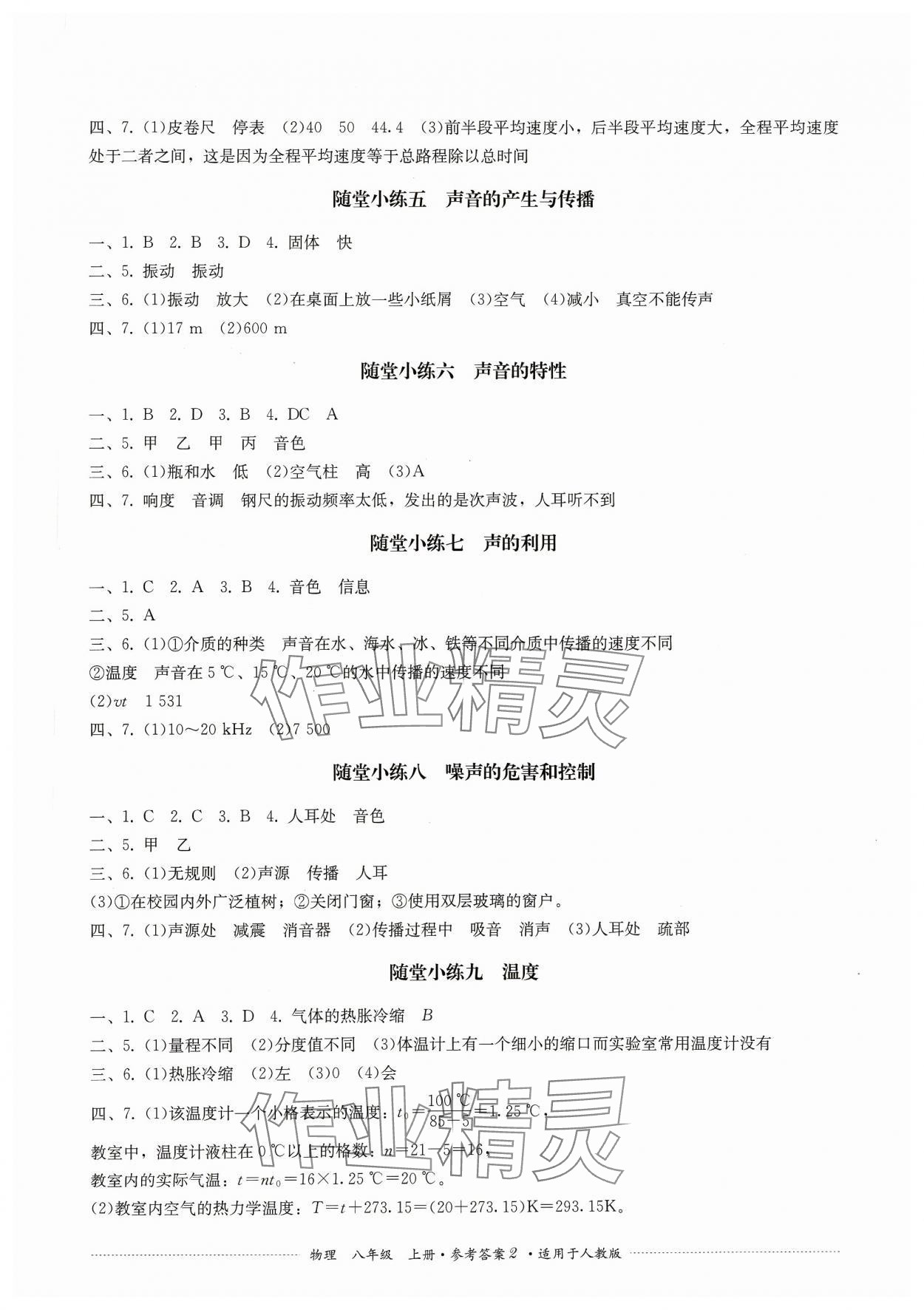 2023年精练过关四川教育出版社八年级物理上册人教版