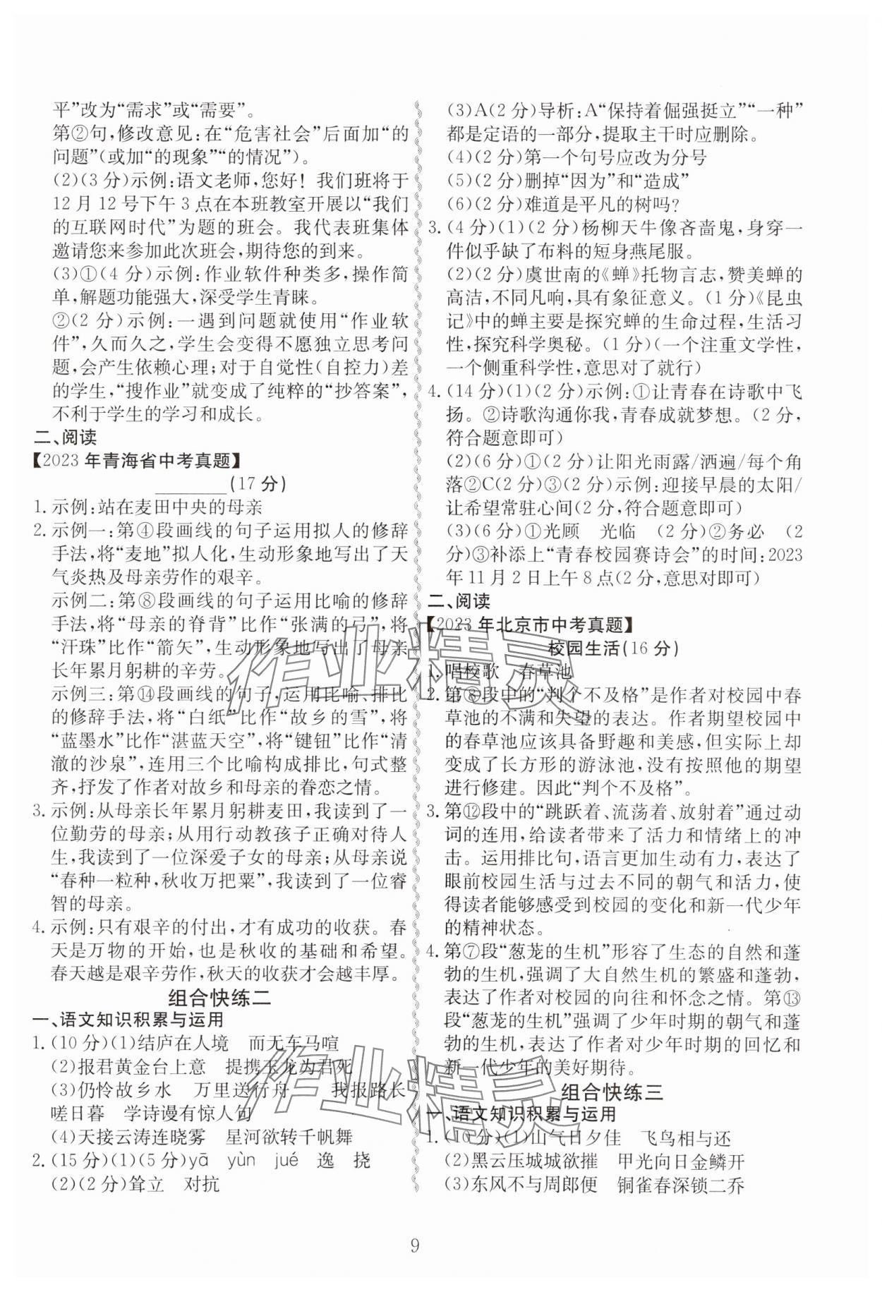 注:目前有些书本章节名称可能整理的还不是很完善,但都是按照顺序排列的,请同学们按照顺序仔细查找。练习册 2023年一本通现代文阅读八年级 答案主要是用来给同学们做完题方便对答案用的,请勿直接抄袭。