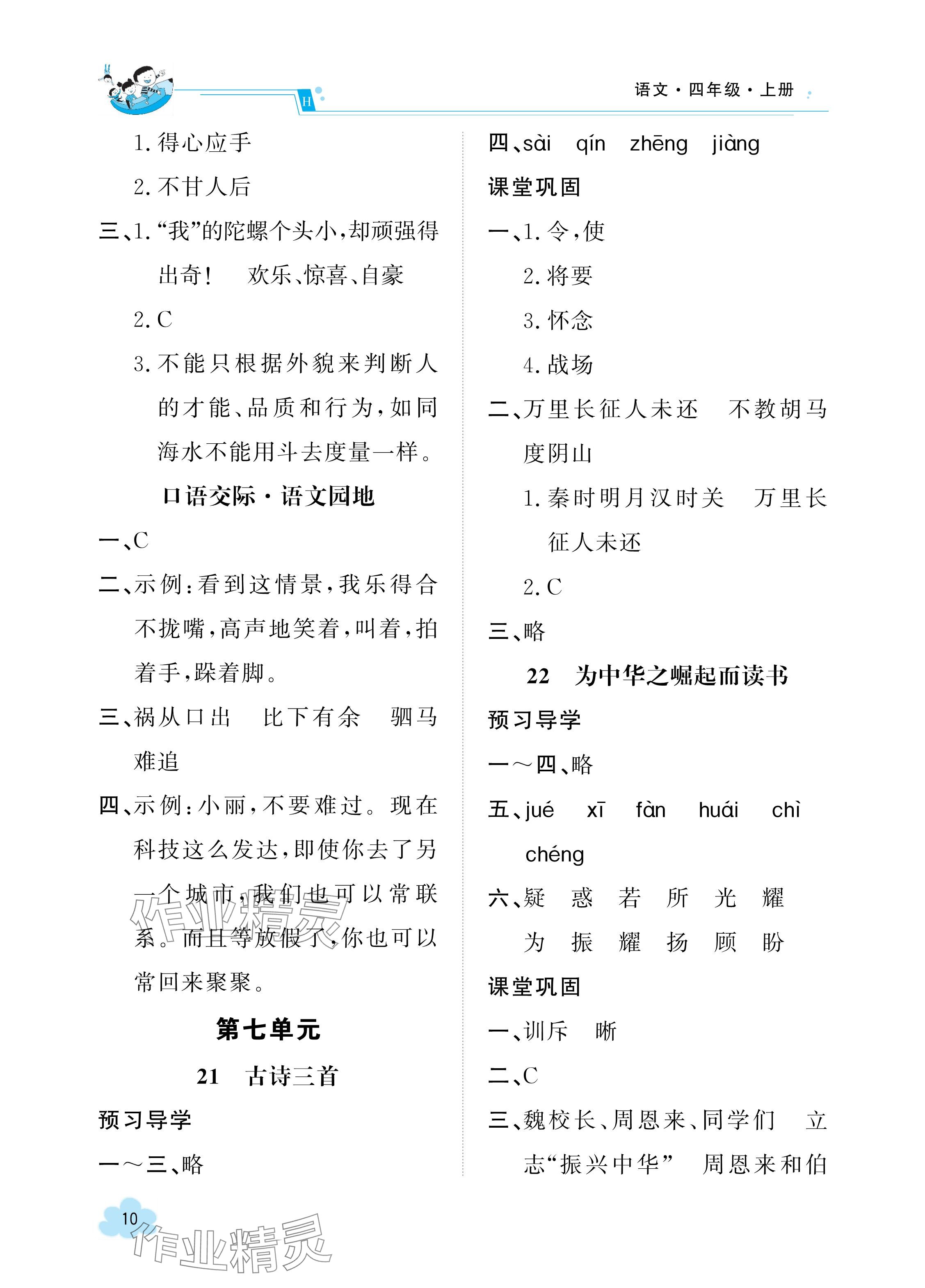 注:目前有些书本章节名称可能整理的还不是很完善,但都是按照顺序排列的,请同学们按照顺序仔细查找。练习册 2023年金太阳导学案四年级语文上册人教版 答案主要是用来给同学们做完题方便对答案用的,请勿直接抄袭。