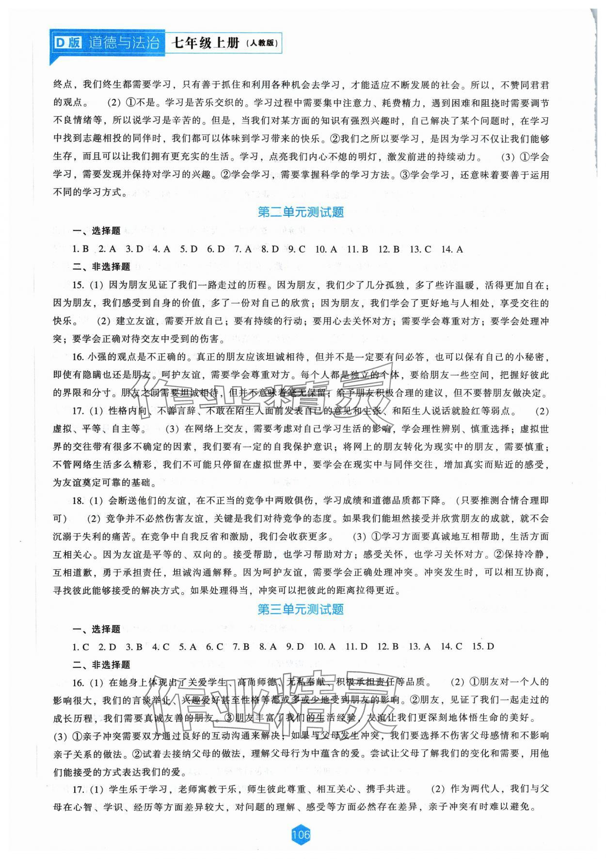 注:目前有些书本章节名称可能整理的还不是很完善,但都是按照顺序排列的,请同学们按照顺序仔细查找。练习册 2023年新课程能力培养七年级道德与法治上册人教版大连专版 答案主要是用来给同学们做完题方便对答案用的,请勿直接抄袭。