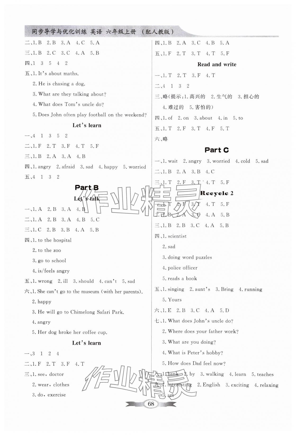 注:目前有些书本章节名称可能整理的还不是很完善,但都是按照顺序排列的,请同学们按照顺序仔细查找。练习册 2023年同步导学与优化训练六年级英语上册人教版 答案主要是用来给同学们做完题方便对答案用的,请勿直接抄袭。