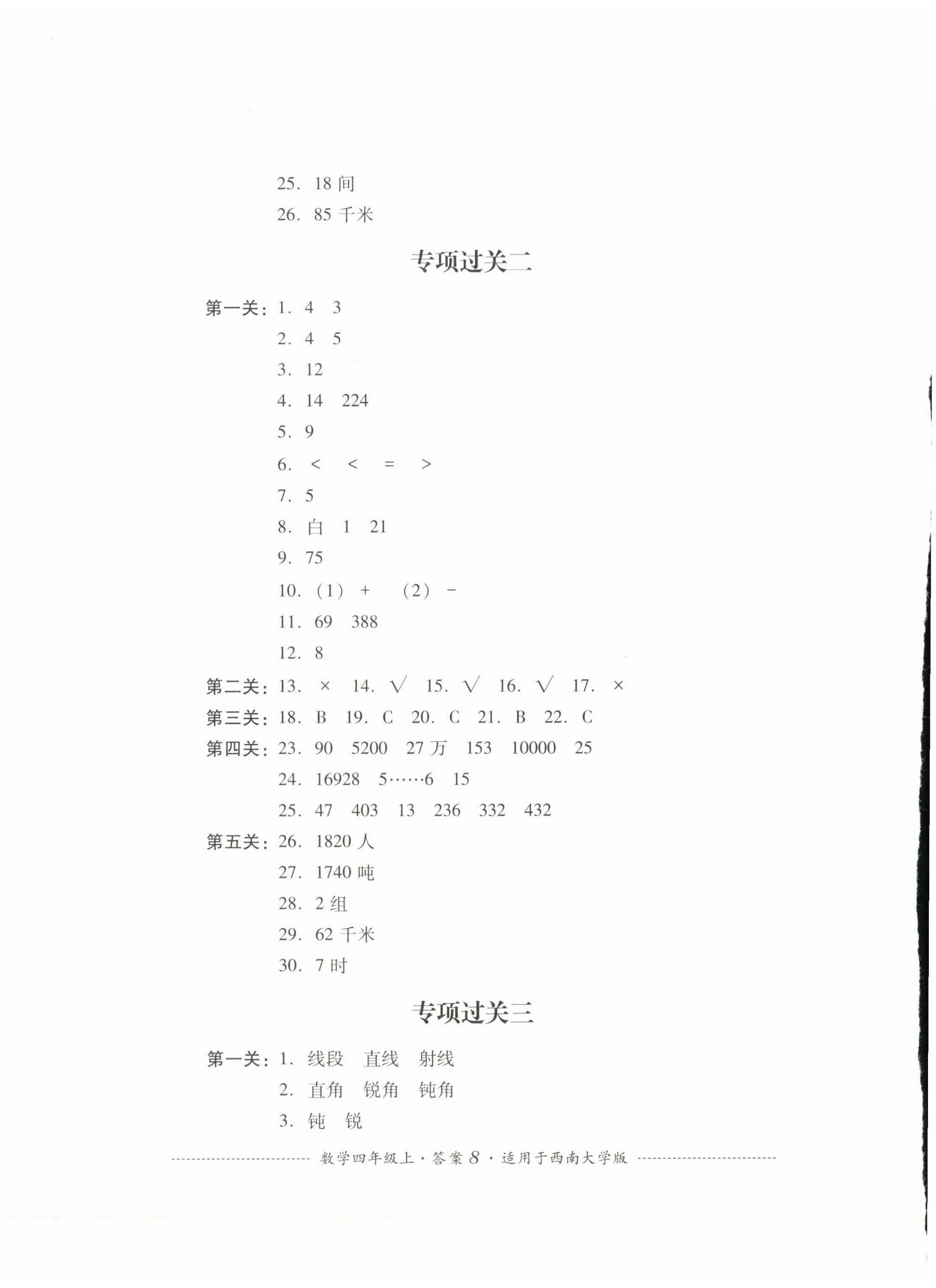 注:目前有些书本章节名称可能整理的还不是很完善,但都是按照顺序排列的,请同学们按照顺序仔细查找。练习册 2023年过关清单四川教育出版社四年级数学上册西师大版 答案主要是用来给同学们做完题方便对答案用的,请勿直接抄袭。