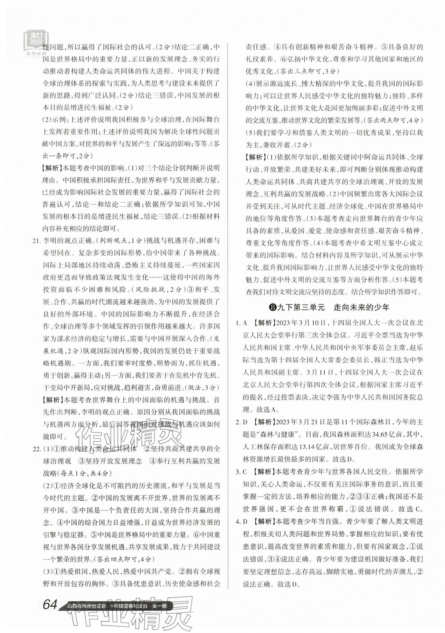 注:目前有些书本章节名称可能整理的还不是很完善,但都是按照顺序排列的,请同学们按照顺序仔细查找。练习册 2023年山西名师原创试卷九年级道德与法治全一册人教版 答案主要是用来给同学们做完题方便对答案用的,请勿直接抄袭。