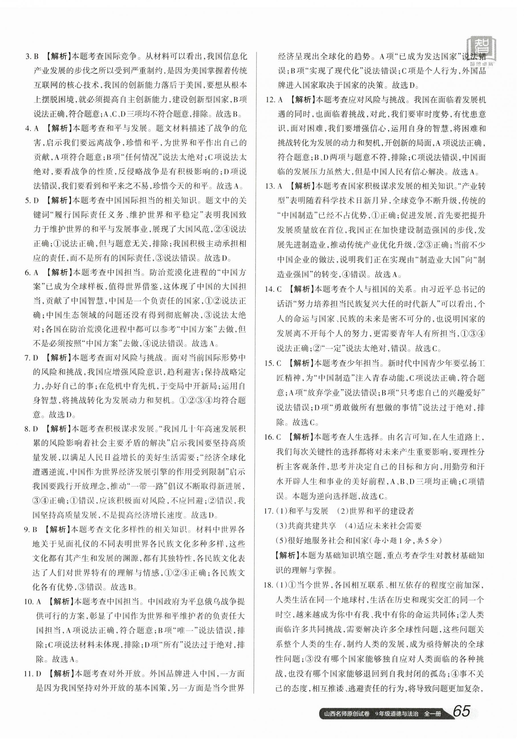 注:目前有些书本章节名称可能整理的还不是很完善,但都是按照顺序排列的,请同学们按照顺序仔细查找。练习册 2023年山西名师原创试卷九年级道德与法治全一册人教版 答案主要是用来给同学们做完题方便对答案用的,请勿直接抄袭。