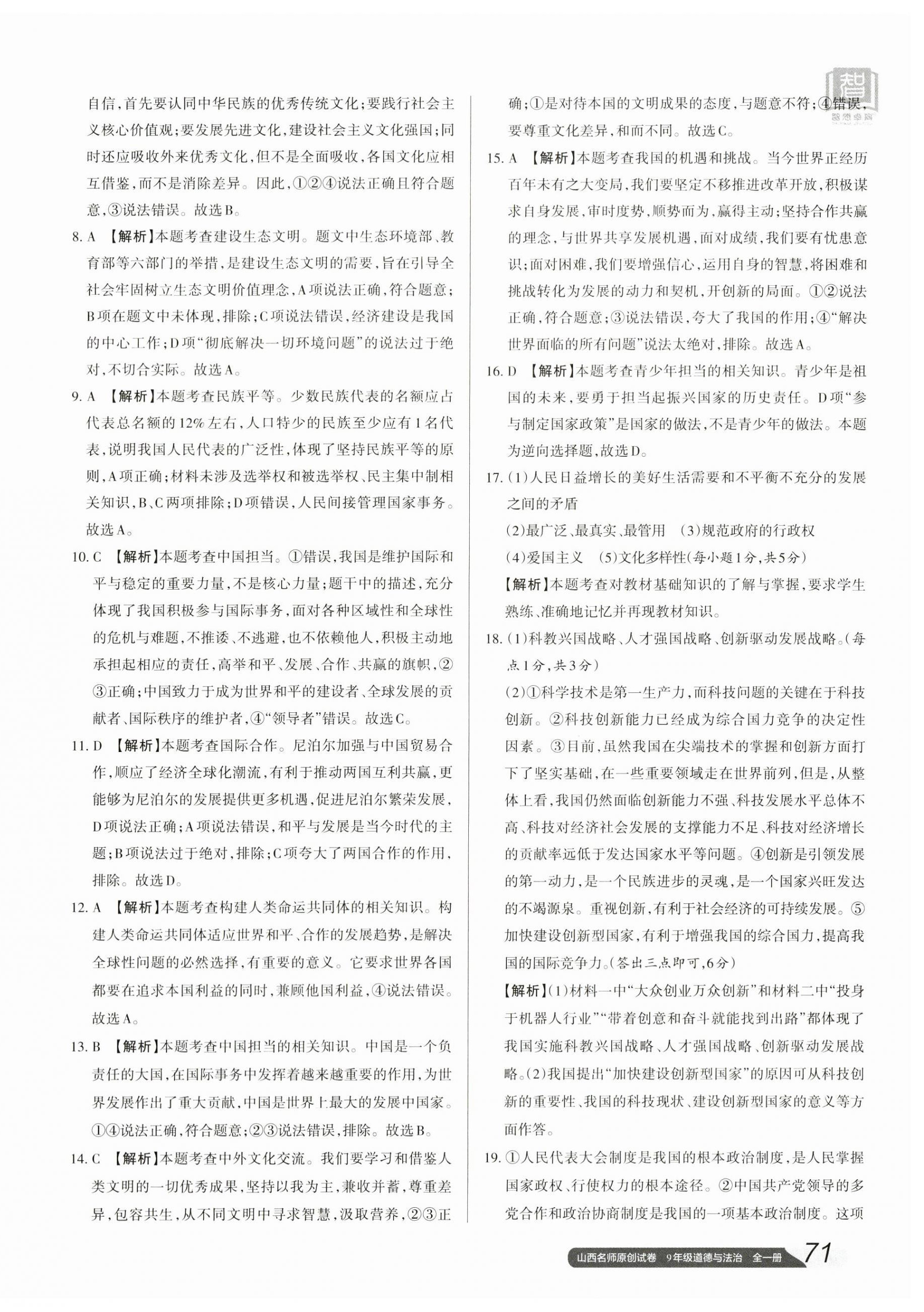 注:目前有些书本章节名称可能整理的还不是很完善,但都是按照顺序排列的,请同学们按照顺序仔细查找。练习册 2023年山西名师原创试卷九年级道德与法治全一册人教版 答案主要是用来给同学们做完题方便对答案用的,请勿直接抄袭。