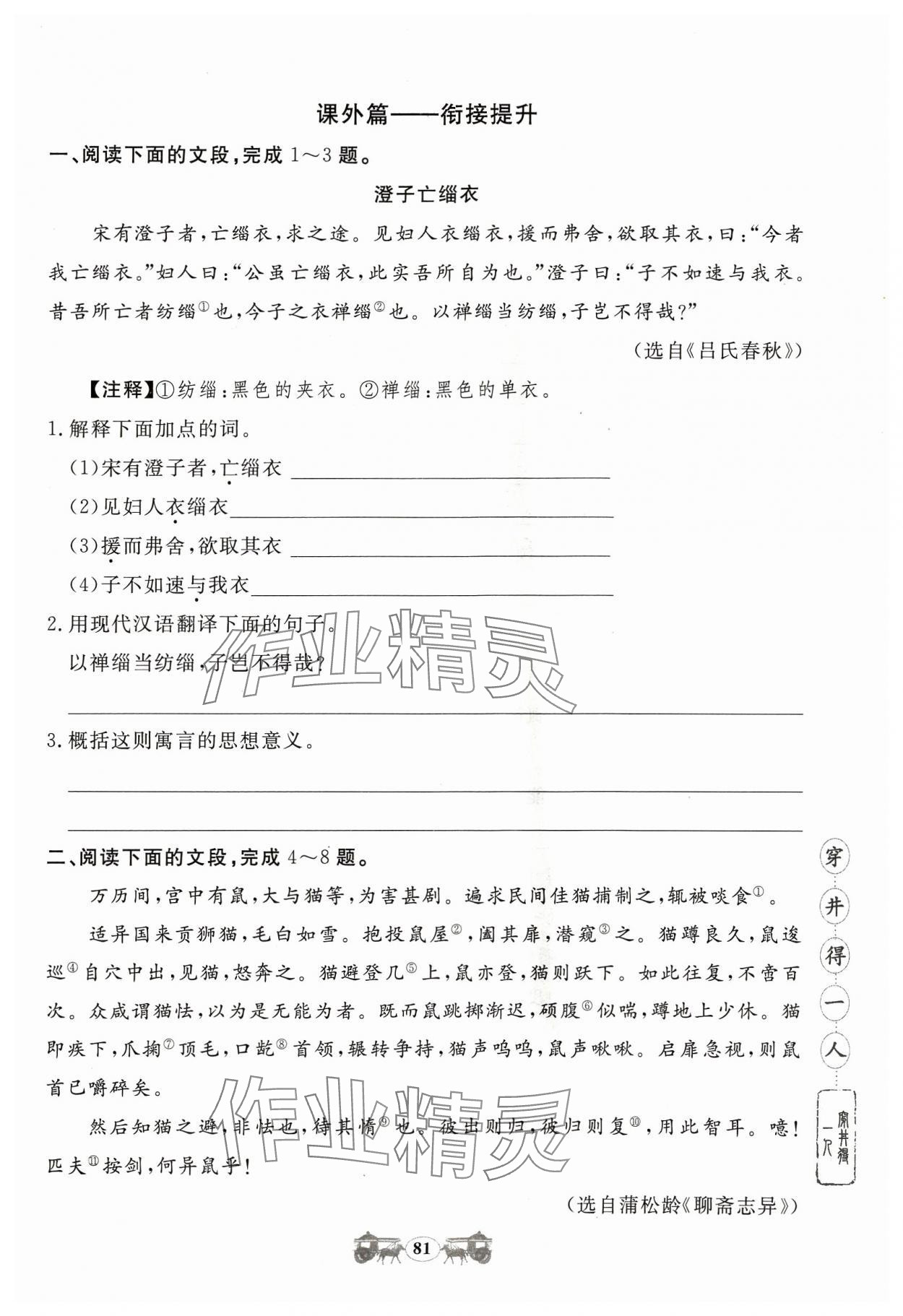 注:目前有些书本章节名称可能整理的还不是很完善,但都是按照顺序排列的,请同学们按照顺序仔细查找。练习册 2023年初中文言文阅读训练山东科学技术出版社七年级语文人教版 答案主要是用来给同学们做完题方便对答案用的,请勿直接抄袭。