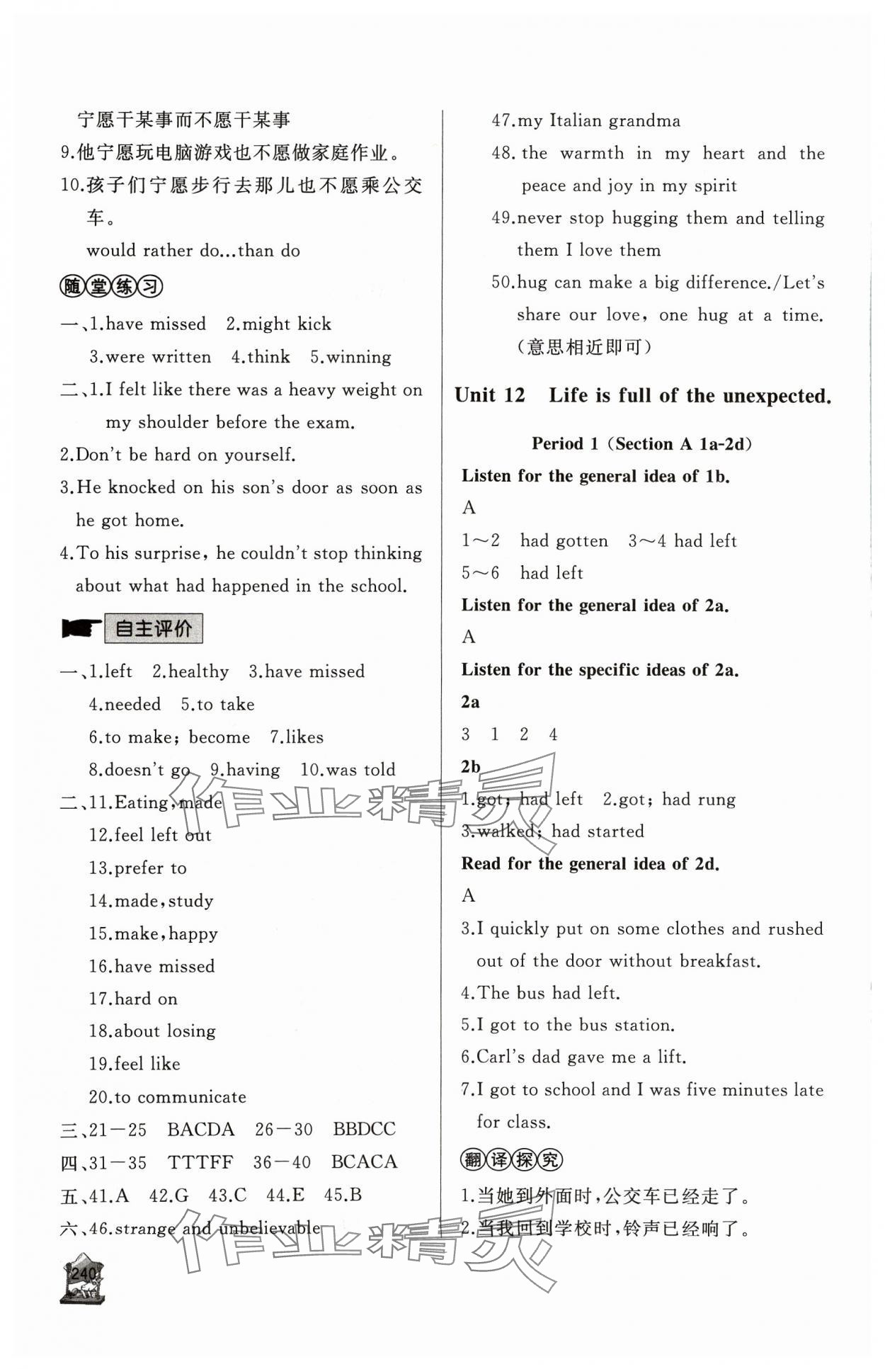 注:目前有些书本章节名称可能整理的还不是很完善,但都是按照顺序排列的,请同学们按照顺序仔细查找。练习册 2023年新课程助学丛书英语九年级全一册人教版 答案主要是用来给同学们做完题方便对答案用的,请勿直接抄袭。