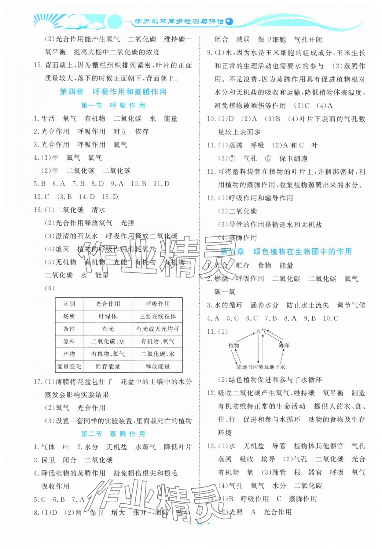 2023年学力水平同步检测与评估八年级生物上册冀少版