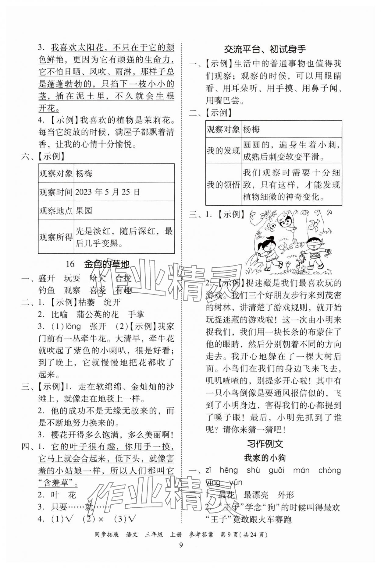 注:目前有些书本章节名称可能整理的还不是很完善,但都是按照顺序排列的,请同学们按照顺序仔细查找。练习册 2023年同步拓展三年级语文上册人教版 答案主要是用来给同学们做完题方便对答案用的,请勿直接抄袭。