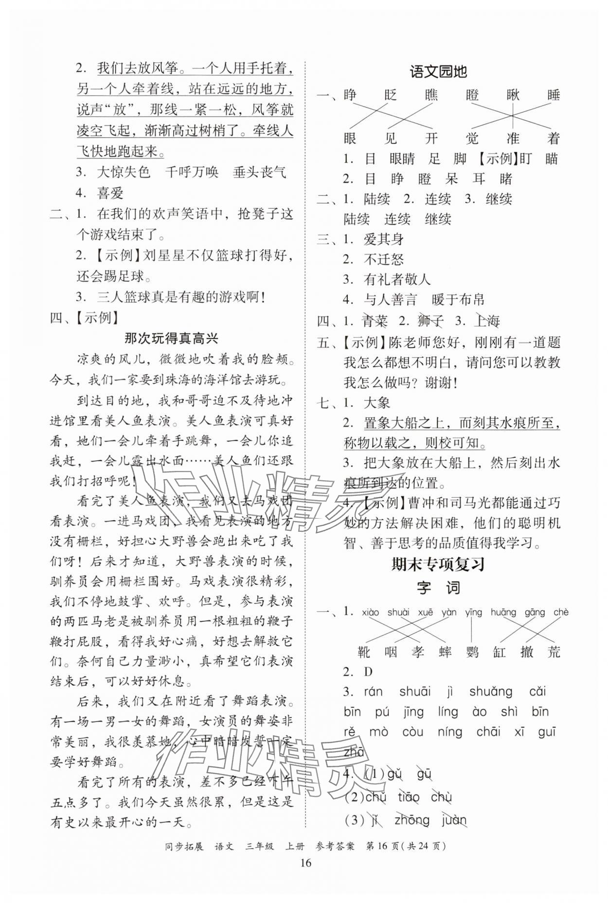注:目前有些书本章节名称可能整理的还不是很完善,但都是按照顺序排列的,请同学们按照顺序仔细查找。练习册 2023年同步拓展三年级语文上册人教版 答案主要是用来给同学们做完题方便对答案用的,请勿直接抄袭。