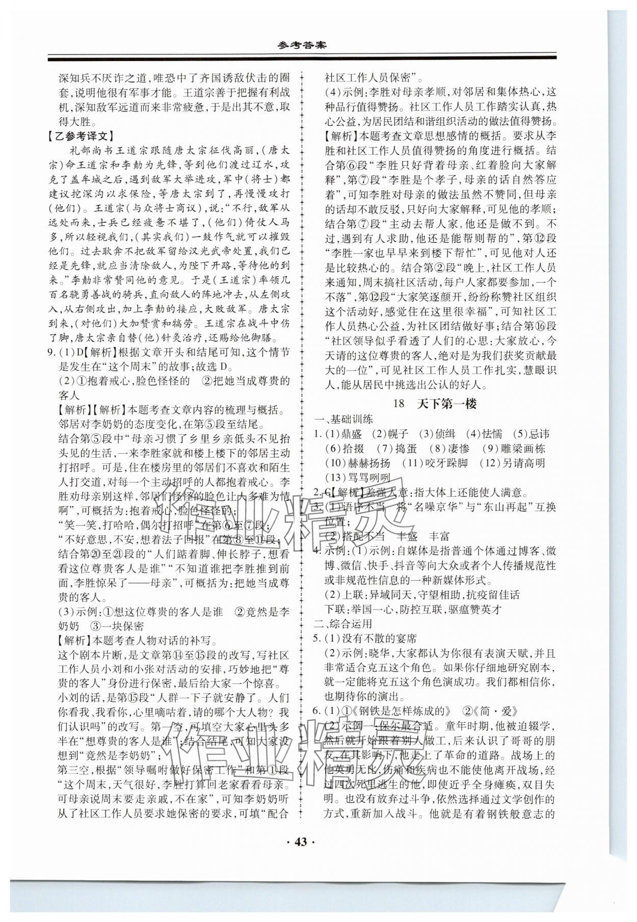 注:目前有些书本章节名称可能整理的还不是很完善,但都是按照顺序排列的,请同学们按照顺序仔细查找。练习册 2023年名师导航语文基础知识与阅读能力训练 答案主要是用来给同学们做完题方便对答案用的,请勿直接抄袭。