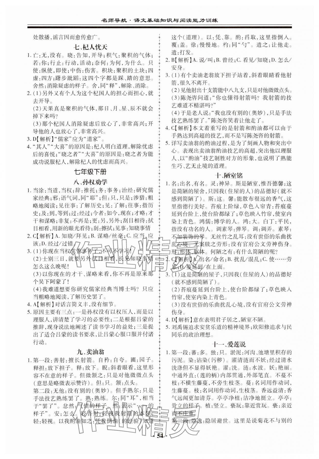 注:目前有些书本章节名称可能整理的还不是很完善,但都是按照顺序排列的,请同学们按照顺序仔细查找。练习册 2023年名师导航语文基础知识与阅读能力训练 答案主要是用来给同学们做完题方便对答案用的,请勿直接抄袭。