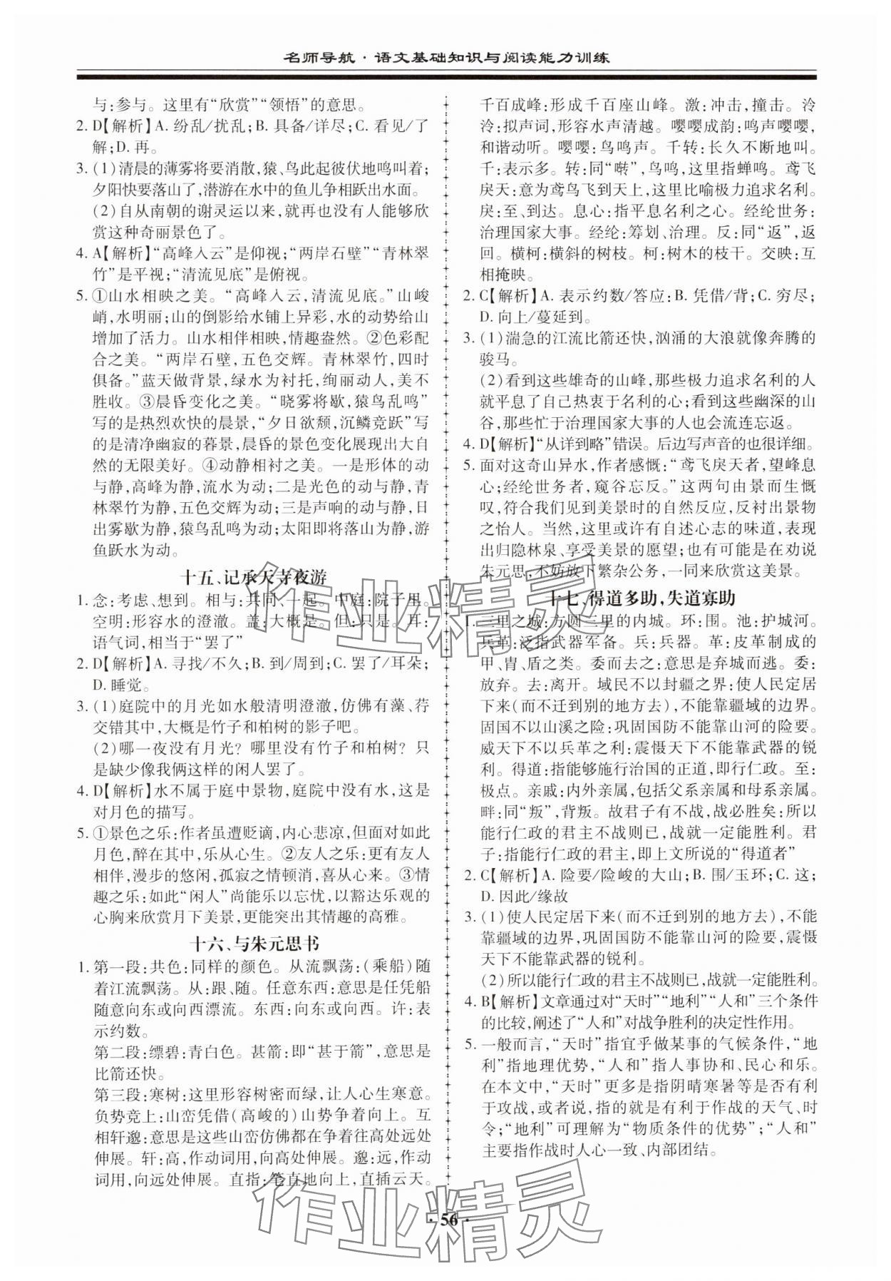 注:目前有些书本章节名称可能整理的还不是很完善,但都是按照顺序排列的,请同学们按照顺序仔细查找。练习册 2023年名师导航语文基础知识与阅读能力训练 答案主要是用来给同学们做完题方便对答案用的,请勿直接抄袭。