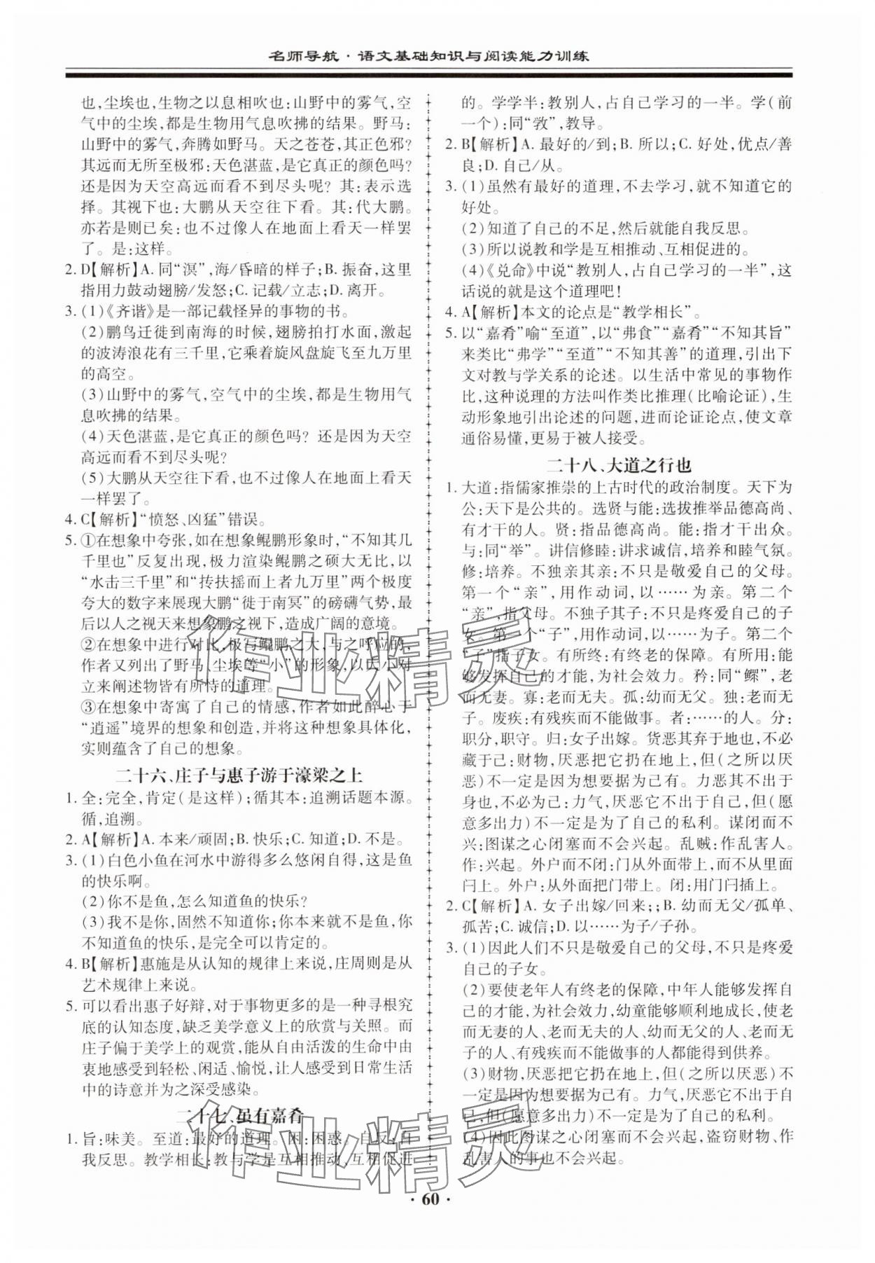 注:目前有些书本章节名称可能整理的还不是很完善,但都是按照顺序排列的,请同学们按照顺序仔细查找。练习册 2023年名师导航语文基础知识与阅读能力训练 答案主要是用来给同学们做完题方便对答案用的,请勿直接抄袭。