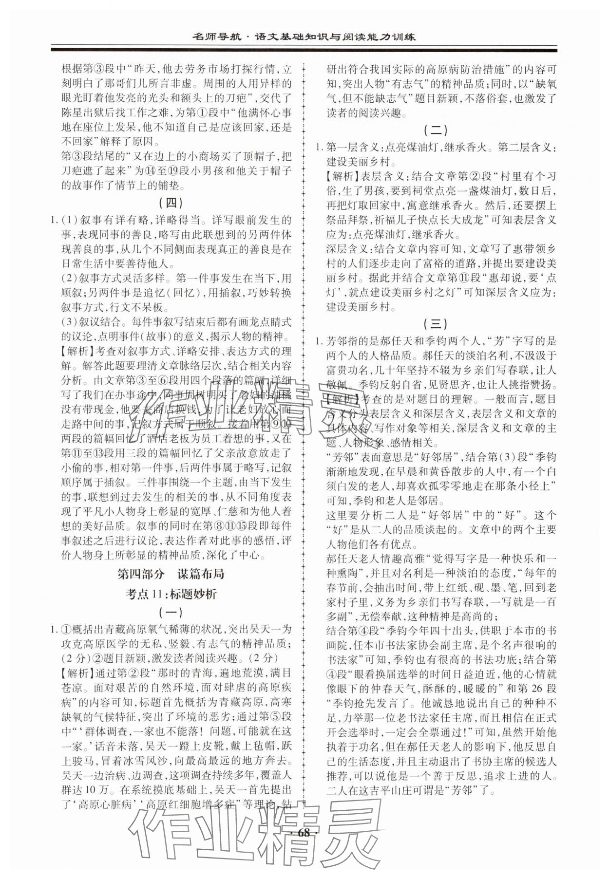 注:目前有些书本章节名称可能整理的还不是很完善,但都是按照顺序排列的,请同学们按照顺序仔细查找。练习册 2023年名师导航语文基础知识与阅读能力训练 答案主要是用来给同学们做完题方便对答案用的,请勿直接抄袭。