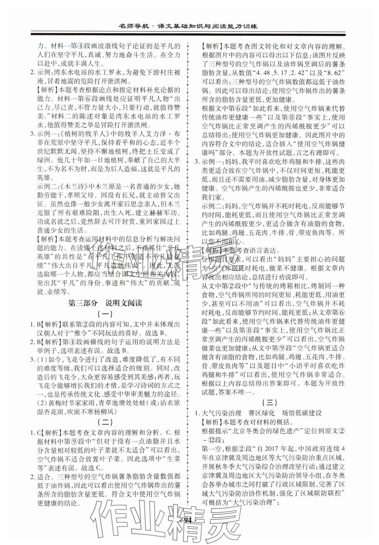 注:目前有些书本章节名称可能整理的还不是很完善,但都是按照顺序排列的,请同学们按照顺序仔细查找。练习册 2023年名师导航语文基础知识与阅读能力训练 答案主要是用来给同学们做完题方便对答案用的,请勿直接抄袭。
