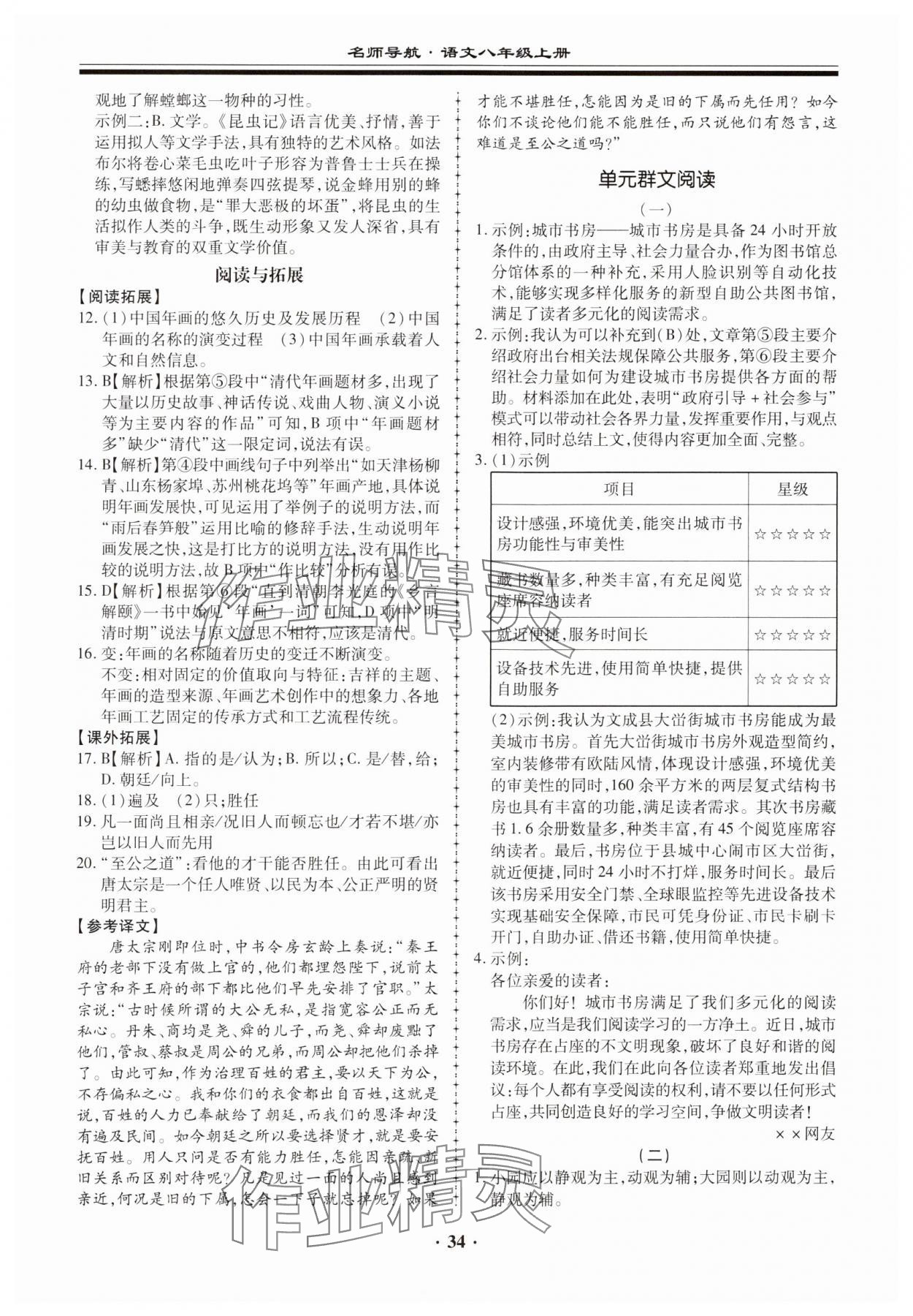 注:目前有些书本章节名称可能整理的还不是很完善,但都是按照顺序排列的,请同学们按照顺序仔细查找。练习册 2023年名师导航同步练与测八年级语文上册人教版 答案主要是用来给同学们做完题方便对答案用的,请勿直接抄袭。