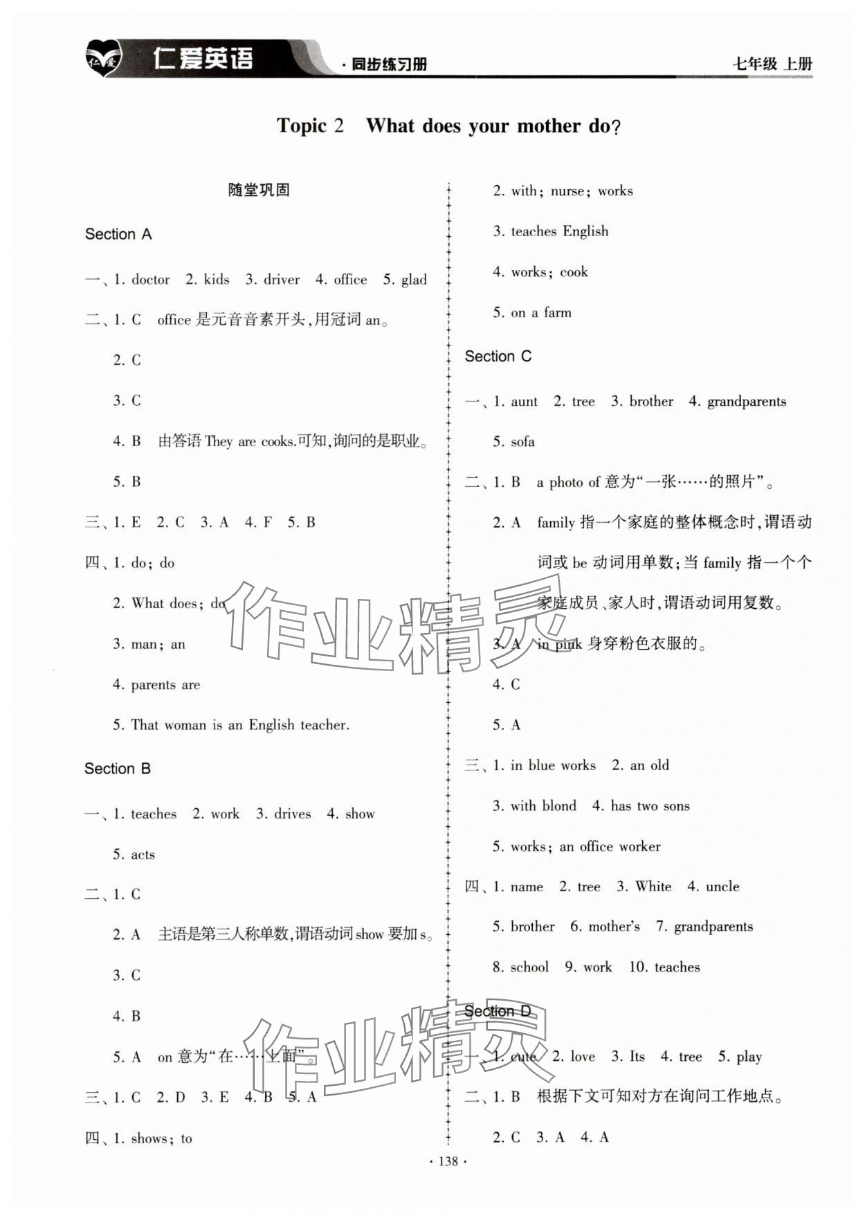 注:目前有些书本章节名称可能整理的还不是很完善,但都是按照顺序排列的,请同学们按照顺序仔细查找。练习册 2023年仁爱英语同步练习册七年级英语上册仁爱版 答案主要是用来给同学们做完题方便对答案用的,请勿直接抄袭。
