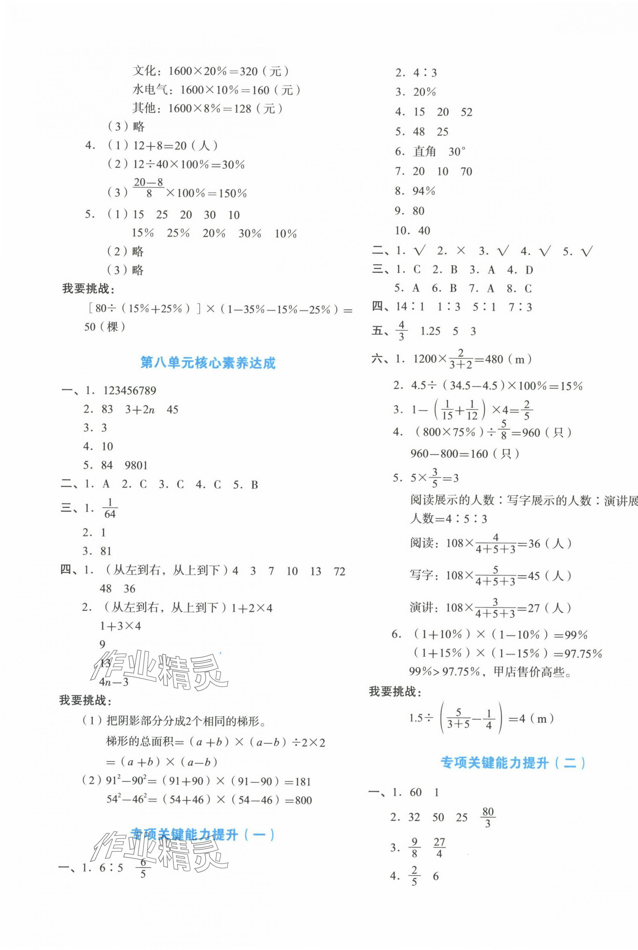 2023年学科素养与能力提升六年级数学上册人教版