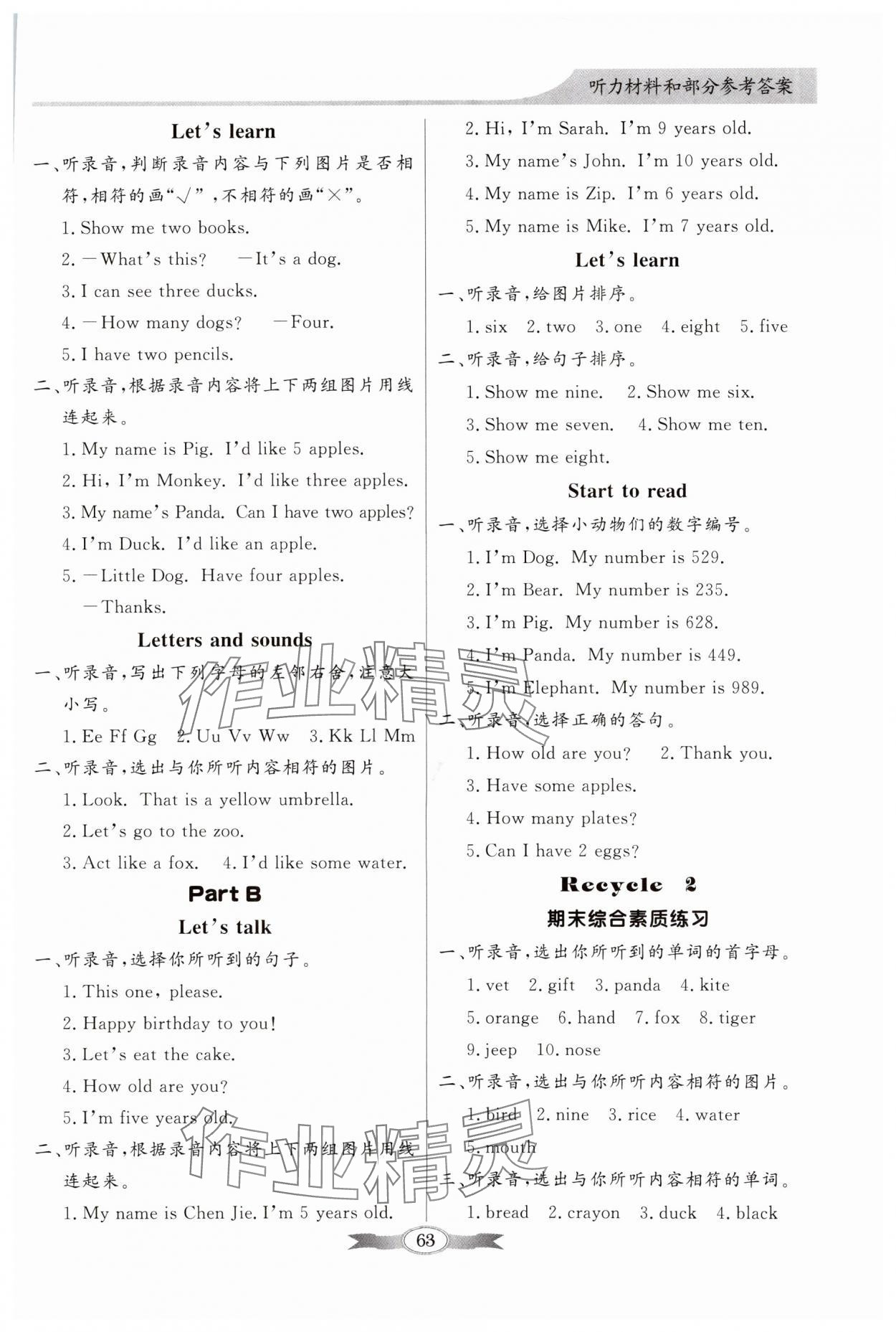 注:目前有些书本章节名称可能整理的还不是很完善,但都是按照顺序排列的,请同学们按照顺序仔细查找。练习册 2023年同步导学与优化训练三年级英语上册人教版 答案主要是用来给同学们做完题方便对答案用的,请勿直接抄袭。