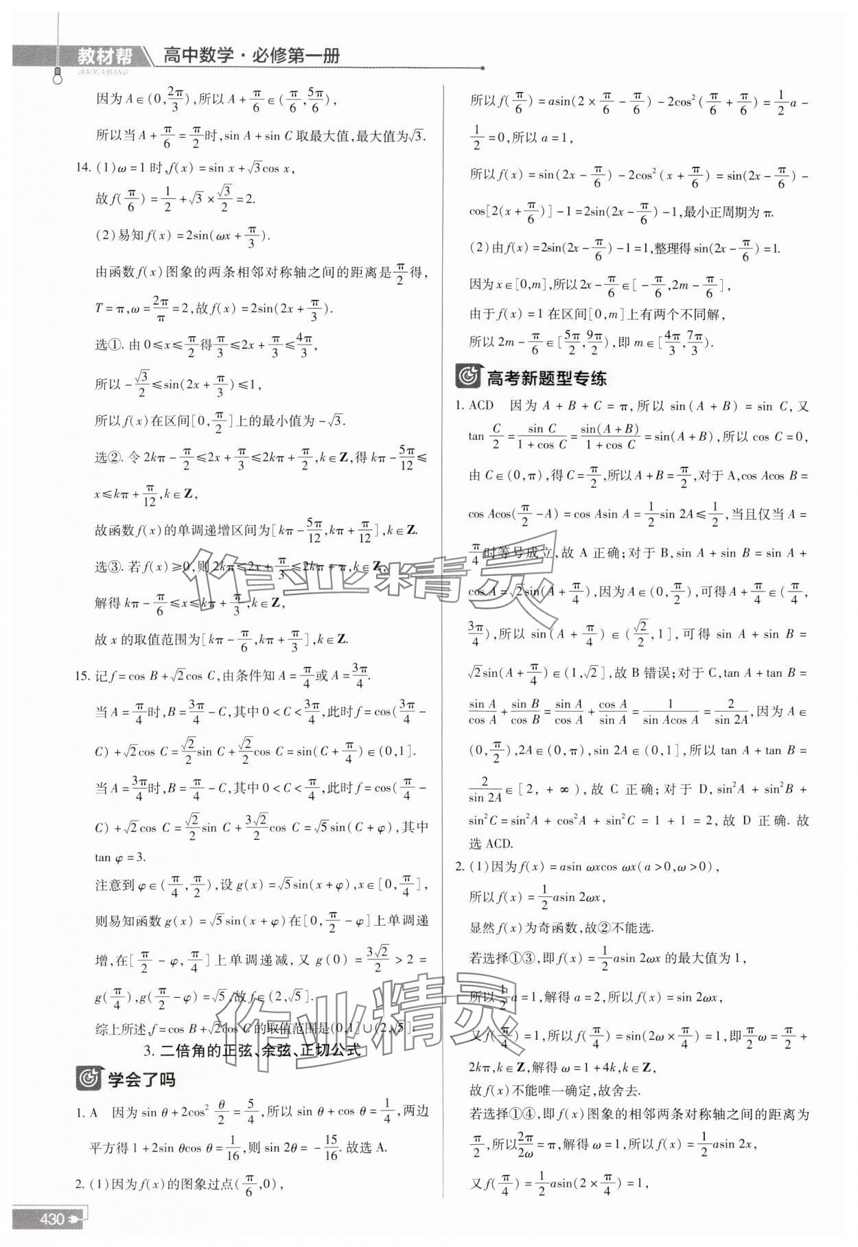 注:目前有些书本章节名称可能整理的还不是很完善,但都是按照顺序排列的,请同学们按照顺序仔细查找。练习册 2023年教材帮高中数学必修第一册人教A版 答案主要是用来给同学们做完题方便对答案用的,请勿直接抄袭。