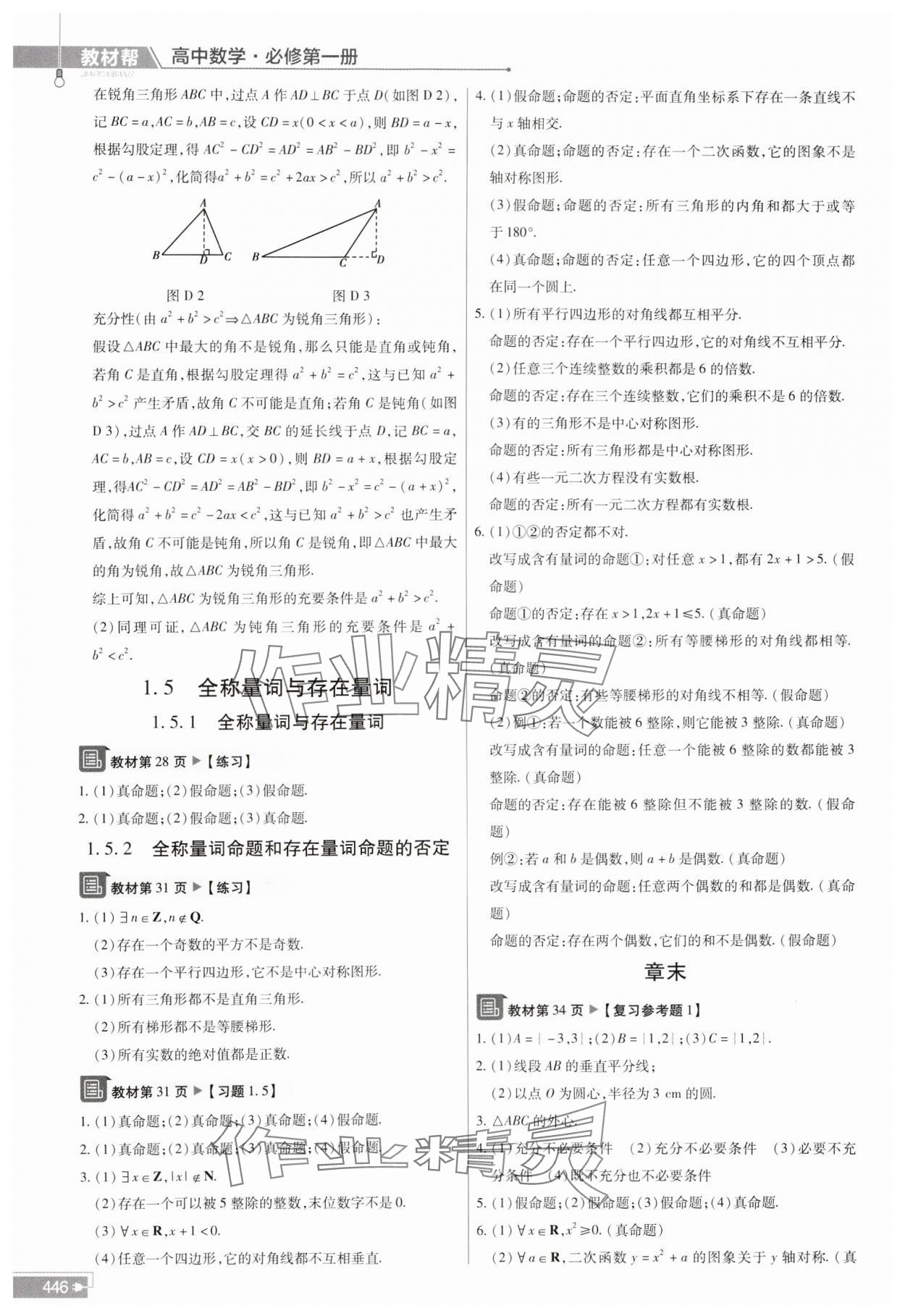 注:目前有些书本章节名称可能整理的还不是很完善,但都是按照顺序排列的,请同学们按照顺序仔细查找。练习册 2023年教材帮高中数学必修第一册人教A版 答案主要是用来给同学们做完题方便对答案用的,请勿直接抄袭。