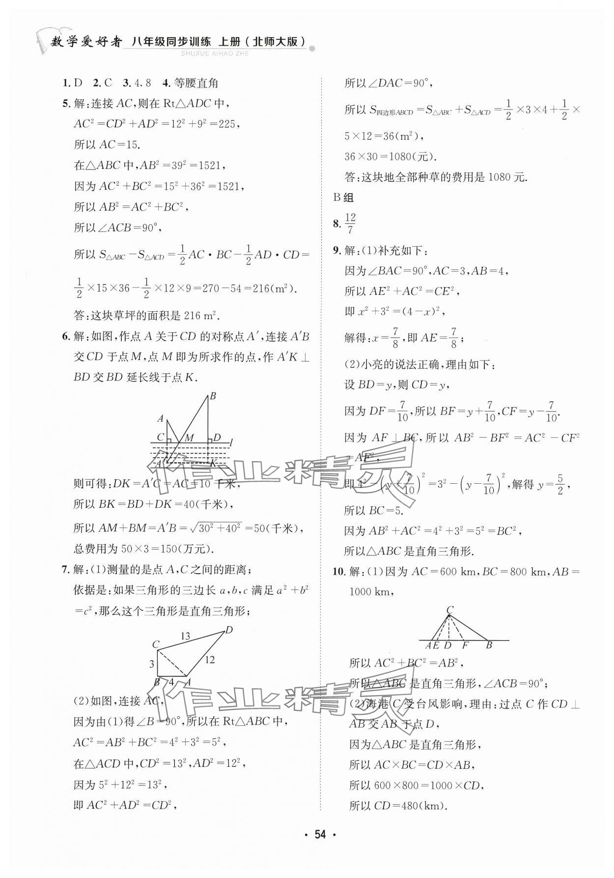 注:目前有些书本章节名称可能整理的还不是很完善,但都是按照顺序排列的,请同学们按照顺序仔细查找。练习册 2023年数学爱好者同步训练八年级上册北师大版 答案主要是用来给同学们做完题方便对答案用的,请勿直接抄袭。