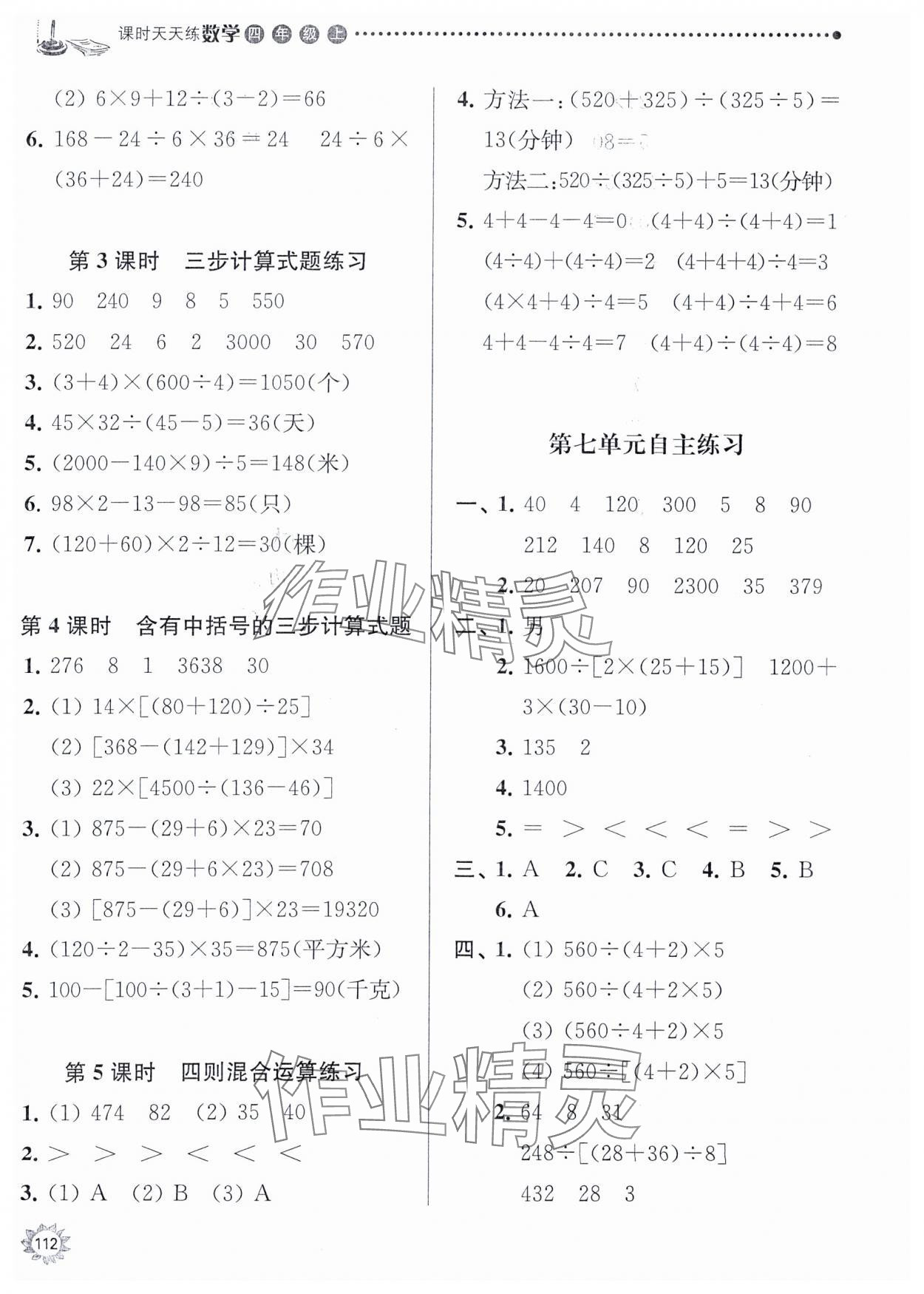 注:目前有些书本章节名称可能整理的还不是很完善,但都是按照顺序排列的,请同学们按照顺序仔细查找。练习册 2023年课时天天练四年级数学上册苏教版 答案主要是用来给同学们做完题方便对答案用的,请勿直接抄袭。