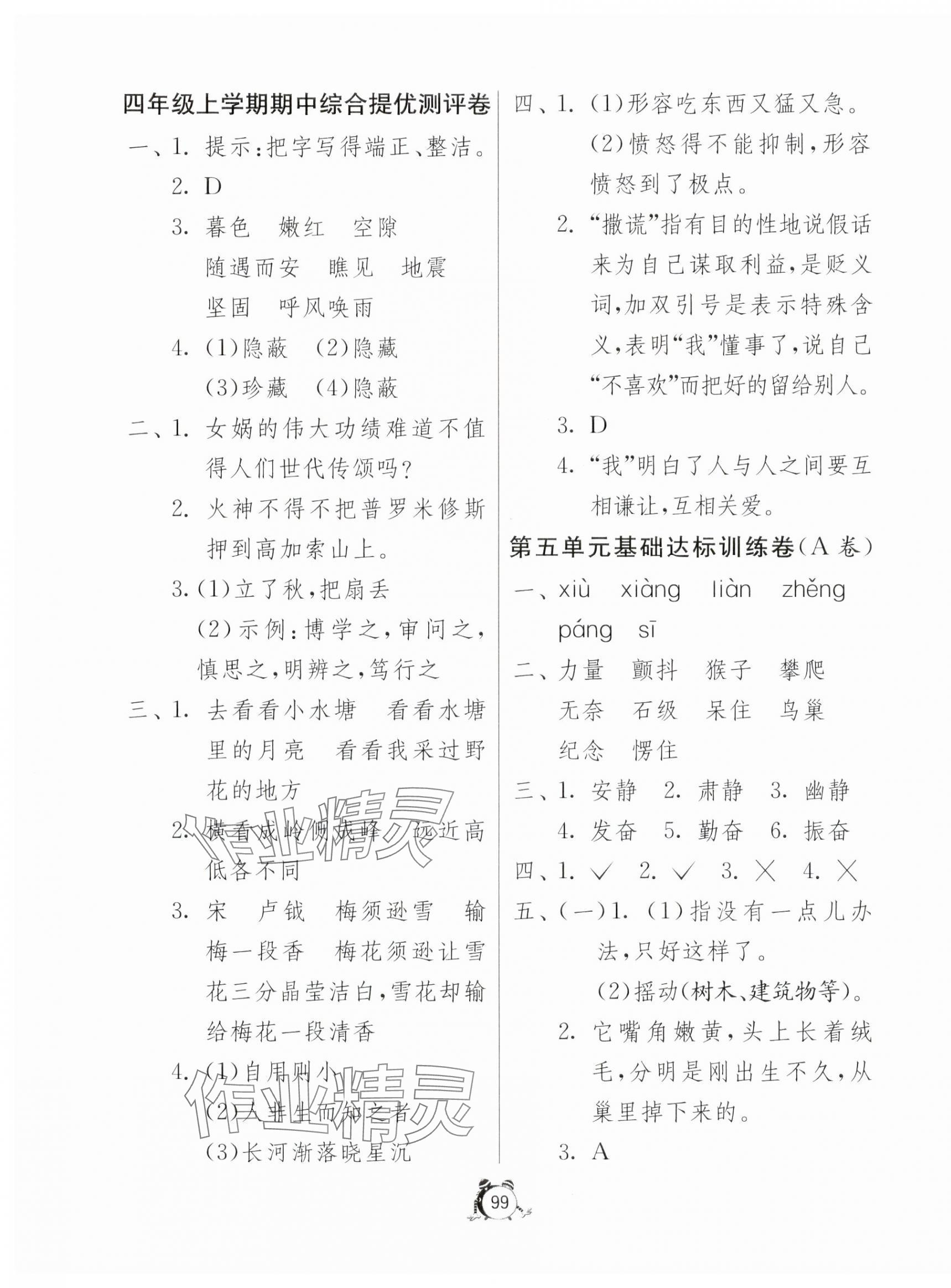 注:目前有些书本章节名称可能整理的还不是很完善,但都是按照顺序排列的,请同学们按照顺序仔细查找。练习册 2023年小学互动空间相伴成长四年级语文上册人教版 答案主要是用来给同学们做完题方便对答案用的,请勿直接抄袭。