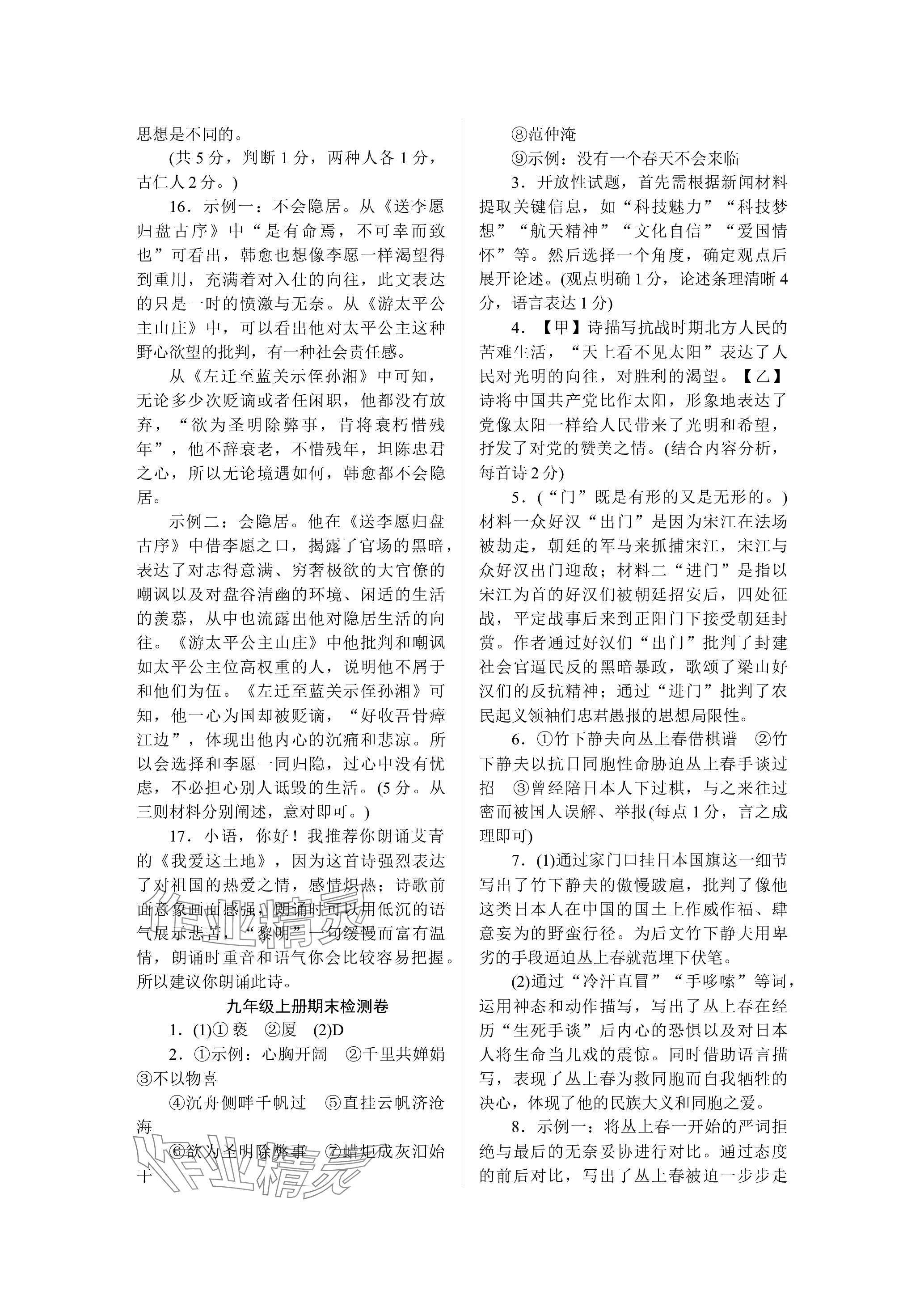 注:目前有些书本章节名称可能整理的还不是很完善,但都是按照顺序排列的,请同学们按照顺序仔细查找。练习册 2023年高分计划九年级语文全一册人教版 答案主要是用来给同学们做完题方便对答案用的,请勿直接抄袭。
