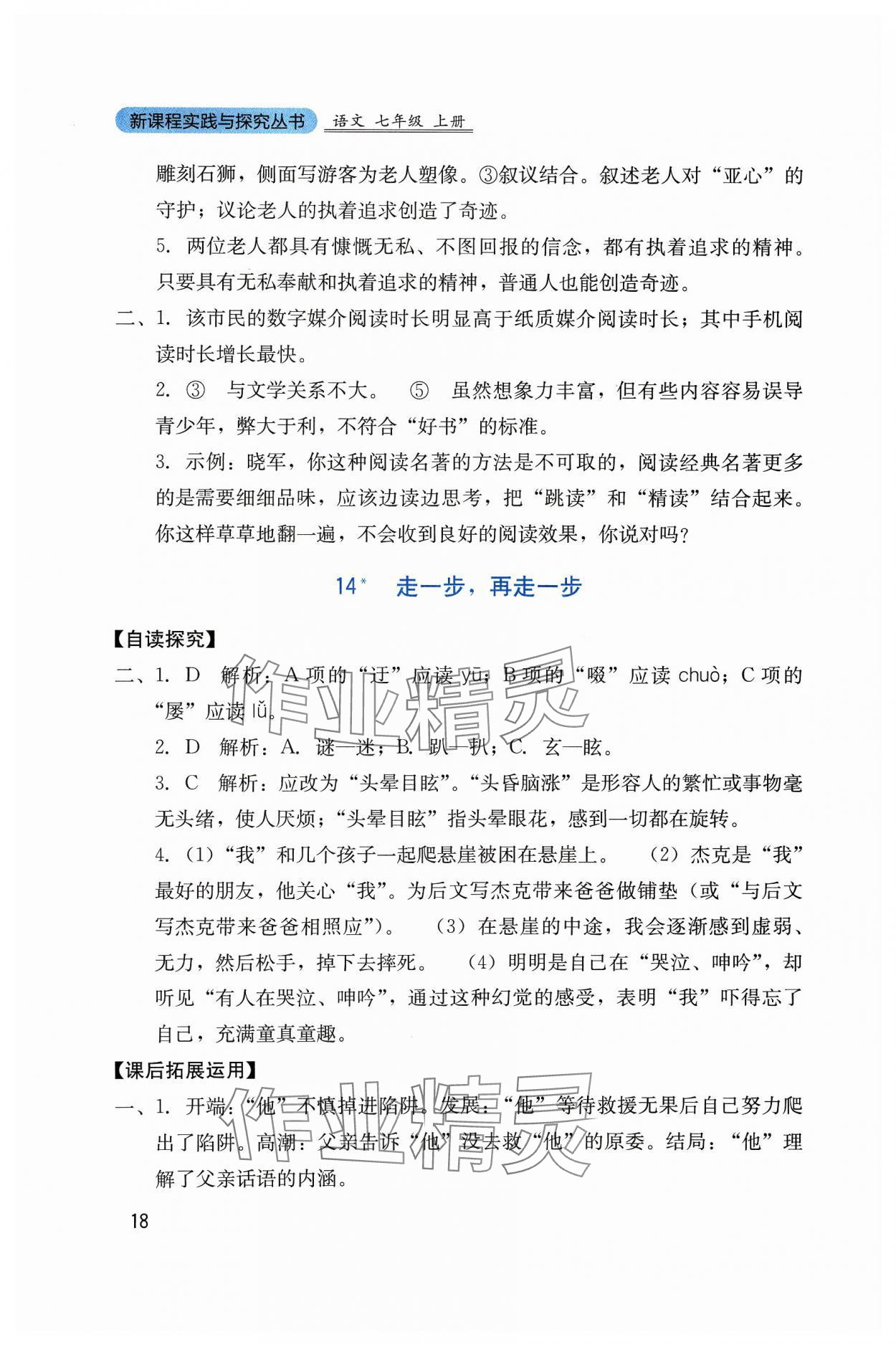 注:目前有些书本章节名称可能整理的还不是很完善,但都是按照顺序排列的,请同学们按照顺序仔细查找。练习册 2023年新课程实践与探究丛书七年级语文上册人教版 答案主要是用来给同学们做完题方便对答案用的,请勿直接抄袭。