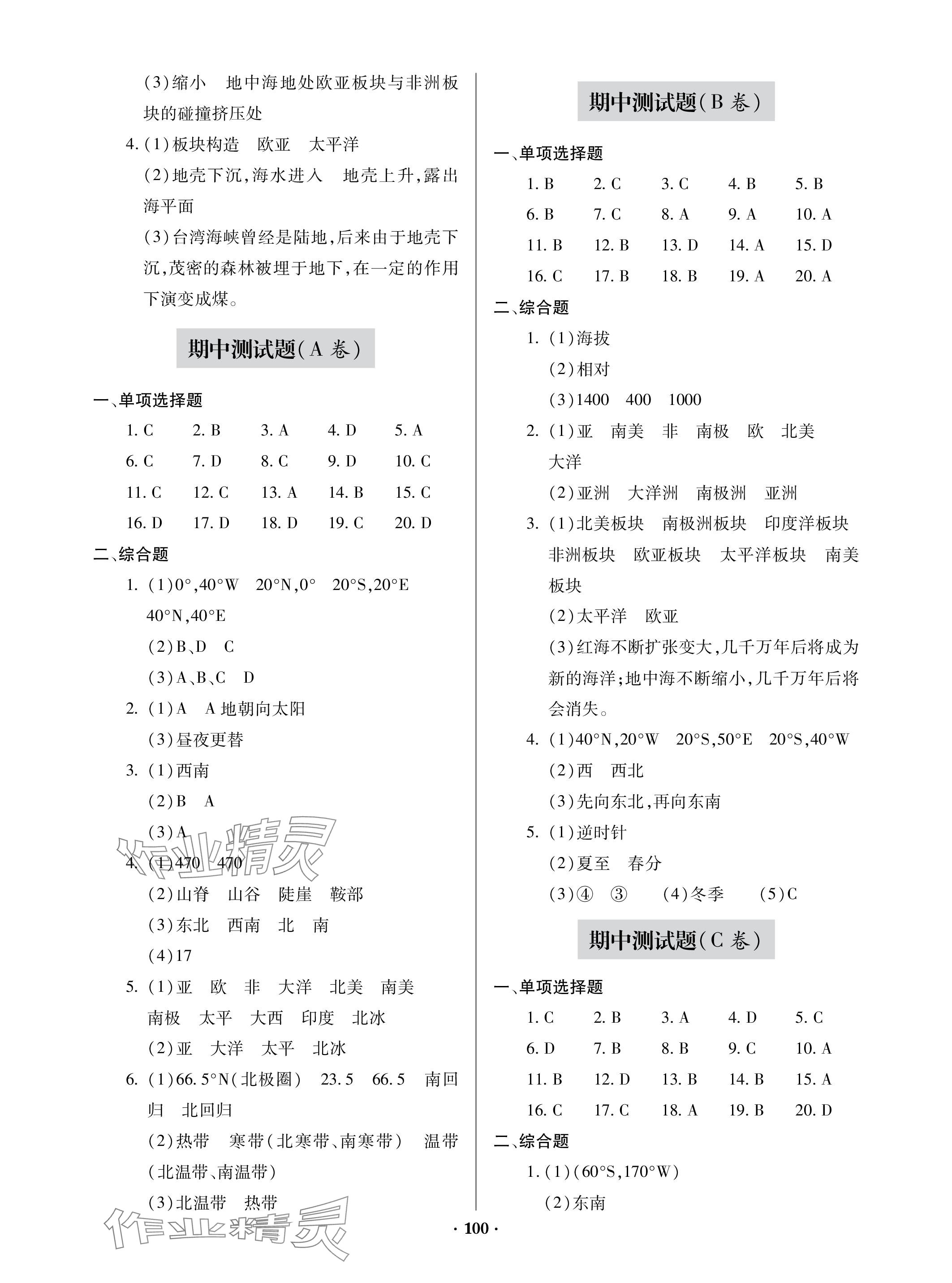 注:目前有些书本章节名称可能整理的还不是很完善,但都是按照顺序排列的,请同学们按照顺序仔细查找。练习册 2023年单元自测试卷青岛出版社七年级地理上册商务星球版 答案主要是用来给同学们做完题方便对答案用的,请勿直接抄袭。