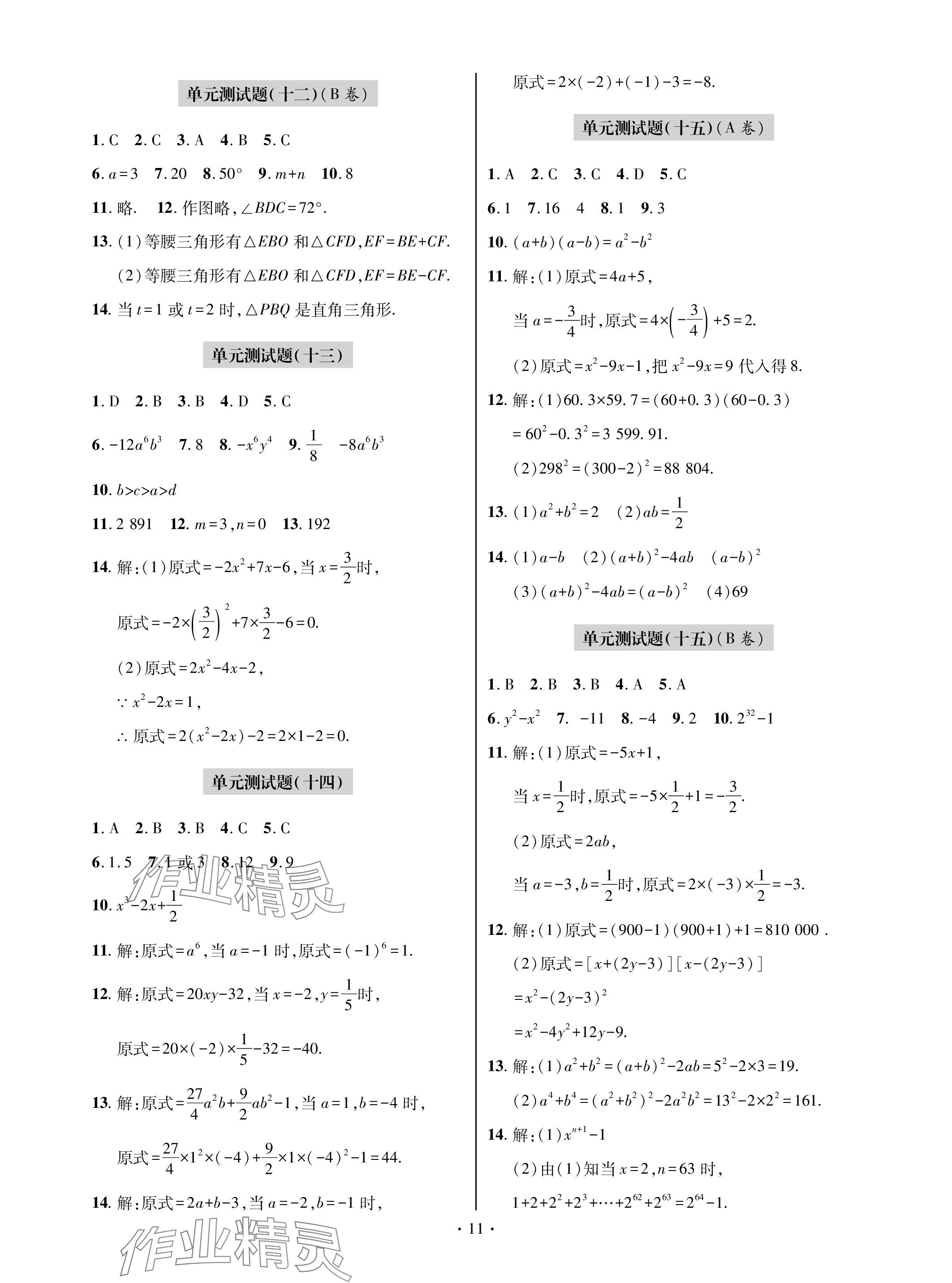 注:目前有些书本章节名称可能整理的还不是很完善,但都是按照顺序排列的,请同学们按照顺序仔细查找。练习册 2023年单元自测试卷青岛出版社八年级数学上册人教版 答案主要是用来给同学们做完题方便对答案用的,请勿直接抄袭。