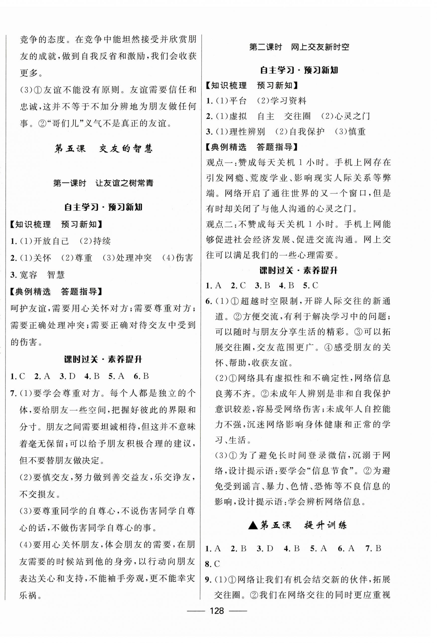 注:目前有些书本章节名称可能整理的还不是很完善,但都是按照顺序排列的,请同学们按照顺序仔细查找。练习册 2023年夺冠百分百新导学课时练七年级道德与法治上册人教版 答案主要是用来给同学们做完题方便对答案用的,请勿直接抄袭。