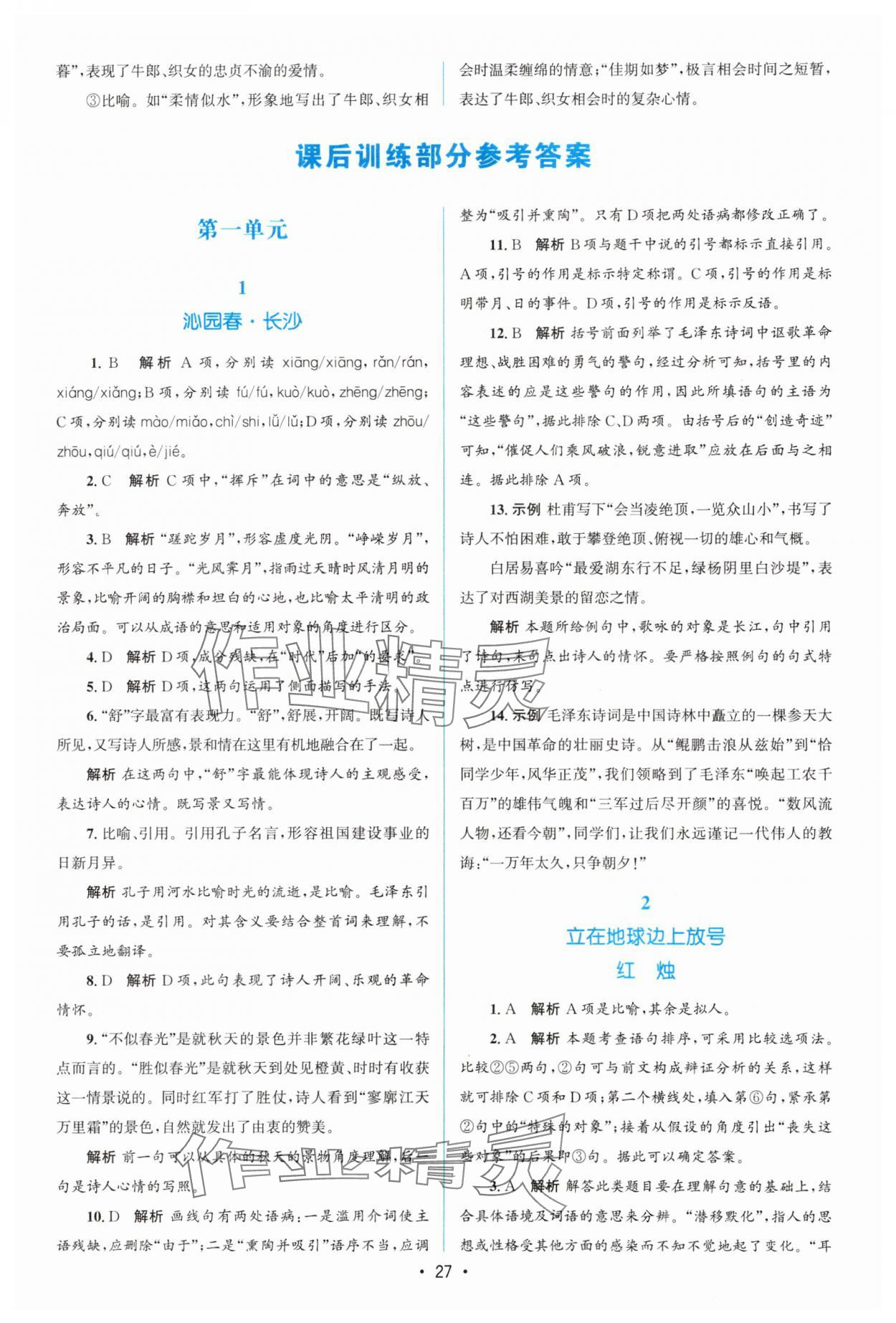 注:目前有些书本章节名称可能整理的还不是很完善,但都是按照顺序排列的,请同学们按照顺序仔细查找。练习册 2023年高中同步测控优化设计高中语文必修上册增强版 答案主要是用来给同学们做完题方便对答案用的,请勿直接抄袭。