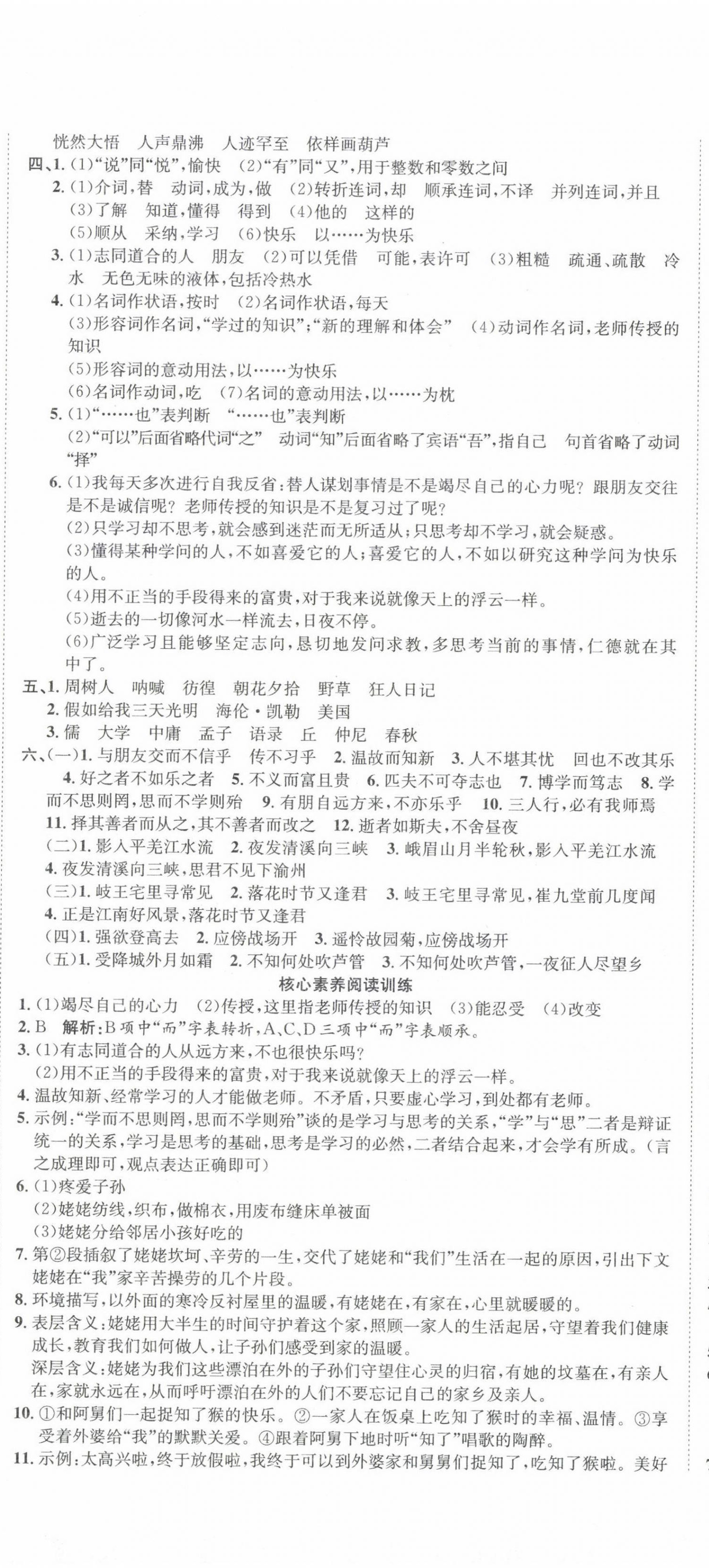 注:目前有些书本章节名称可能整理的还不是很完善,但都是按照顺序排列的,请同学们按照顺序仔细查找。练习册 2023年标准卷长江出版社七年级语文上册人教版重庆专版 答案主要是用来给同学们做完题方便对答案用的,请勿直接抄袭。
