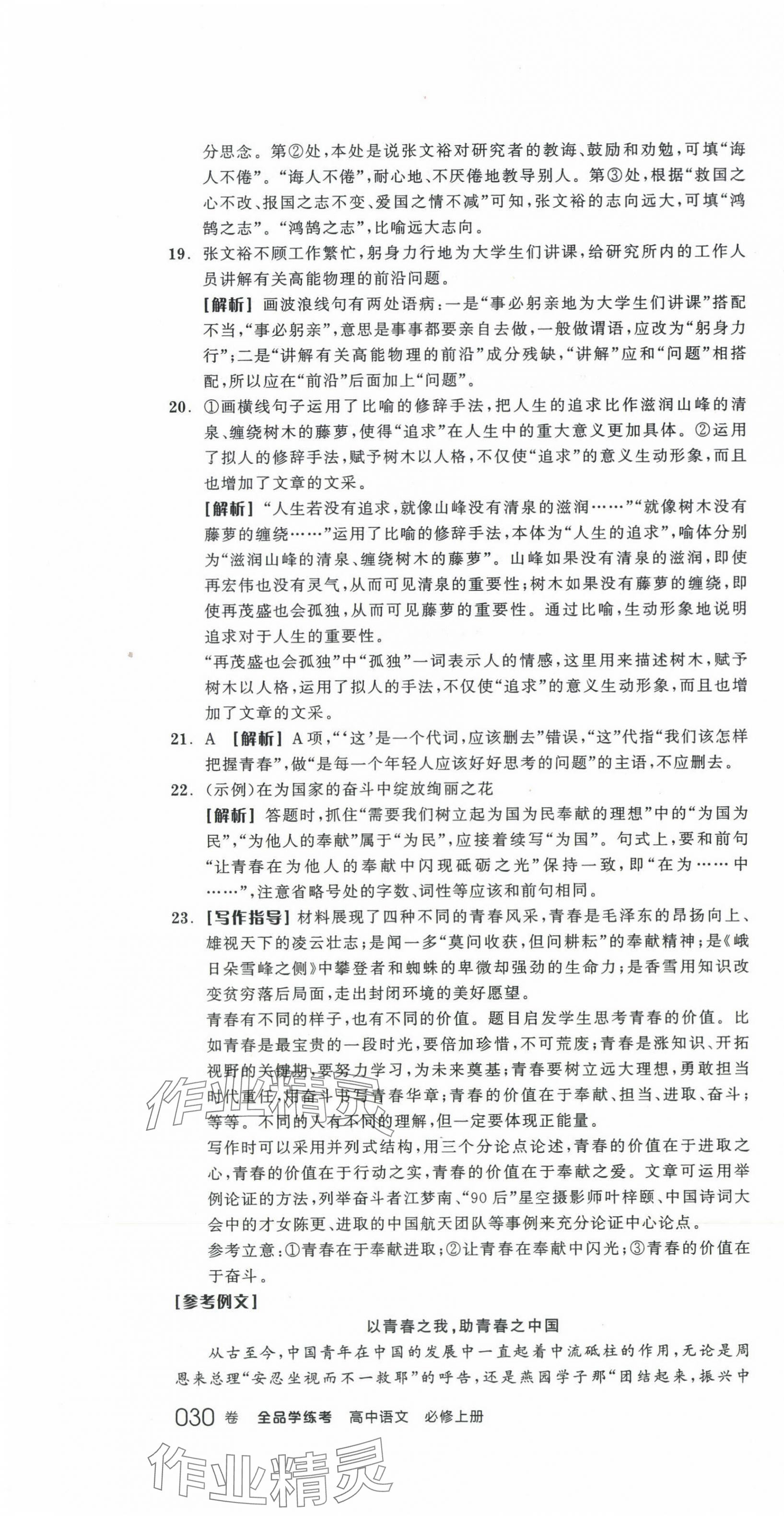 注:目前有些书本章节名称可能整理的还不是很完善,但都是按照顺序排列的,请同学们按照顺序仔细查找。练习册 2023年全品学练考高中语文必修上册 答案主要是用来给同学们做完题方便对答案用的,请勿直接抄袭。