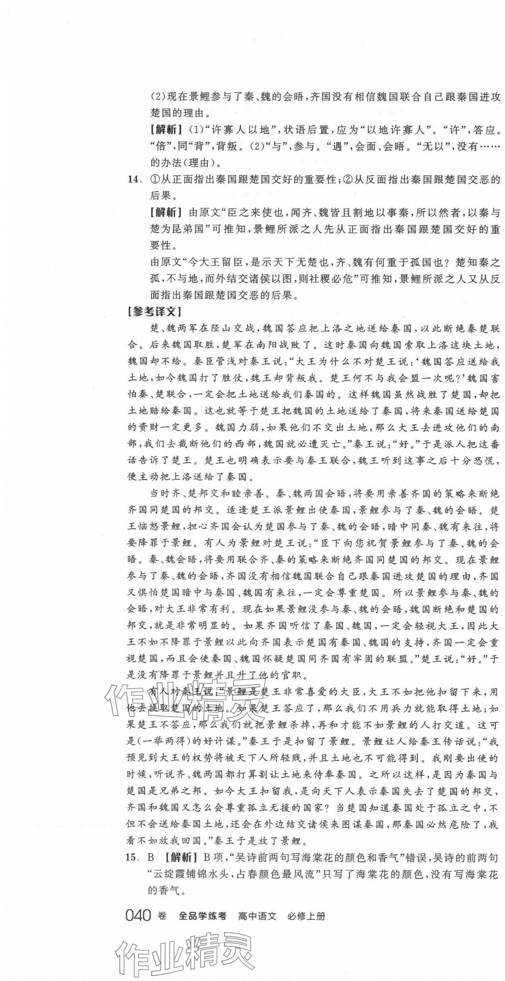 注:目前有些书本章节名称可能整理的还不是很完善,但都是按照顺序排列的,请同学们按照顺序仔细查找。练习册 2023年全品学练考高中语文必修上册 答案主要是用来给同学们做完题方便对答案用的,请勿直接抄袭。
