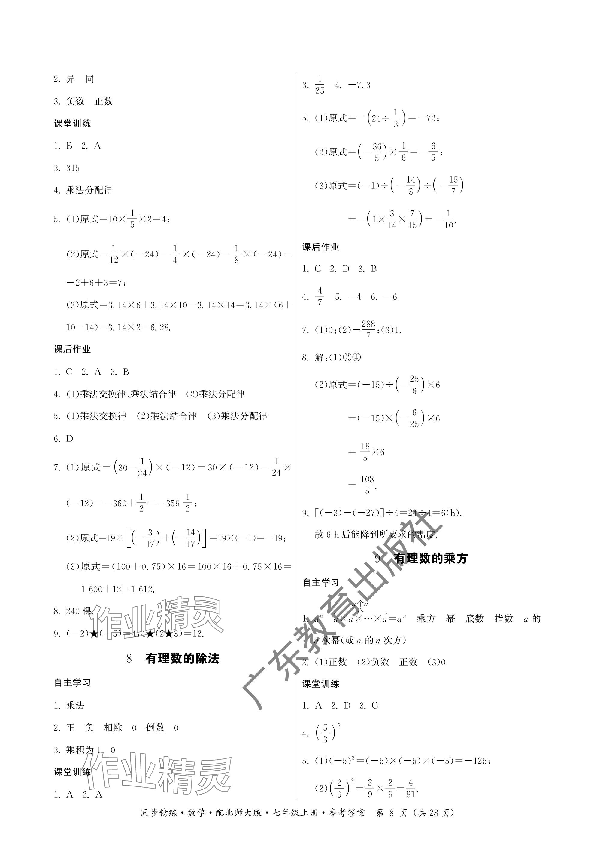 注:目前有些书本章节名称可能整理的还不是很完善,但都是按照顺序排列的,请同学们按照顺序仔细查找。练习册 2023年同步精练广东七年级数学上册北师大版 答案主要是用来给同学们做完题方便对答案用的,请勿直接抄袭。