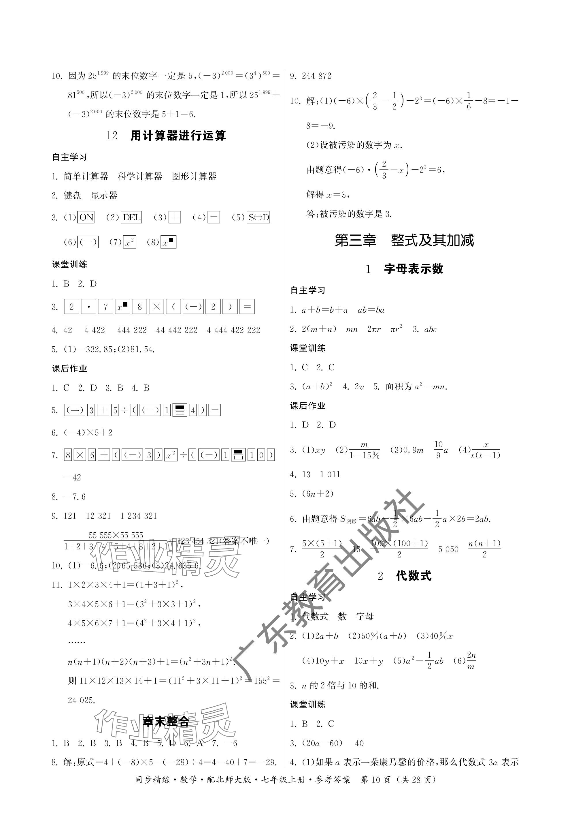 注:目前有些书本章节名称可能整理的还不是很完善,但都是按照顺序排列的,请同学们按照顺序仔细查找。练习册 2023年同步精练广东七年级数学上册北师大版 答案主要是用来给同学们做完题方便对答案用的,请勿直接抄袭。