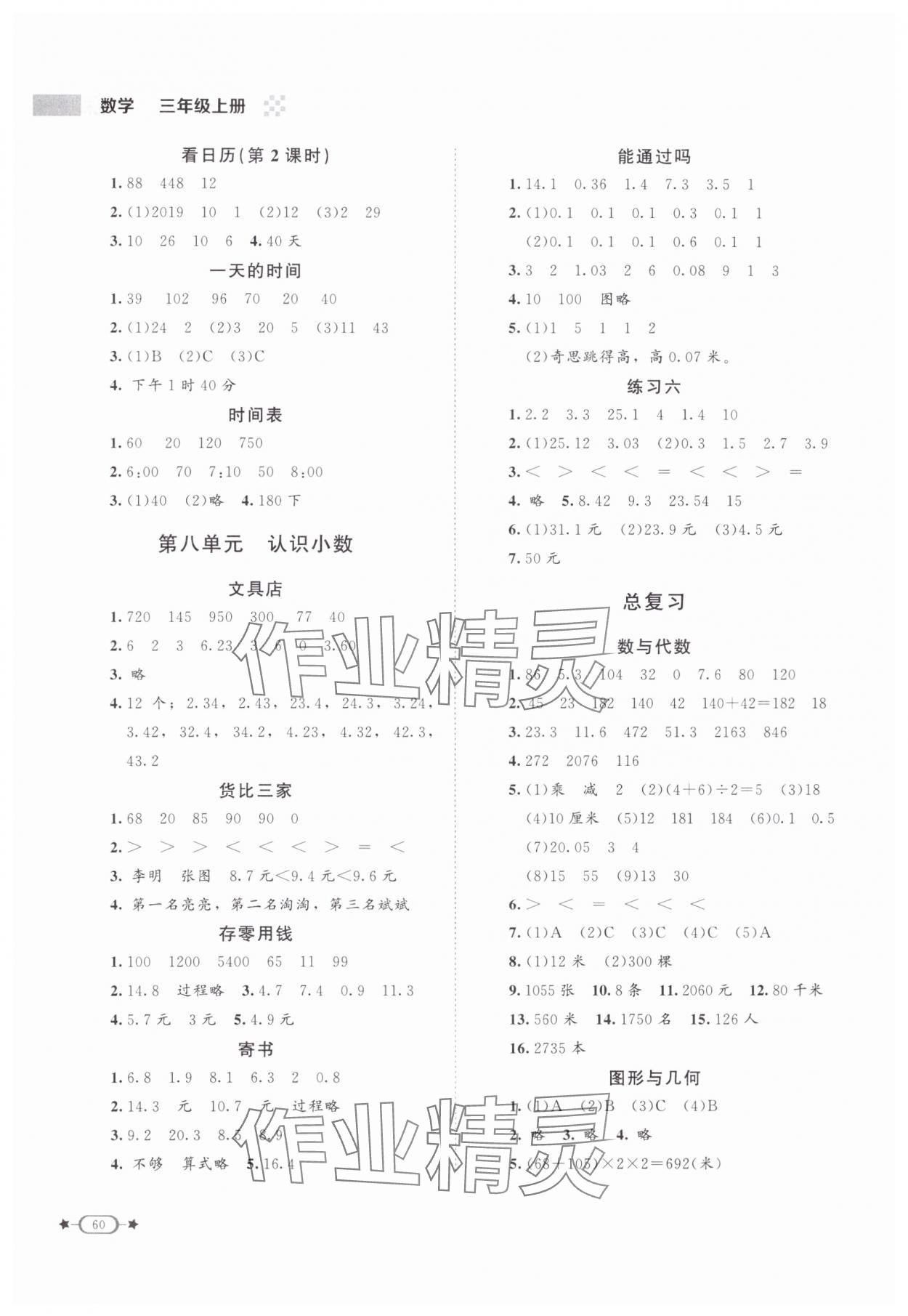 注:目前有些书本章节名称可能整理的还不是很完善,但都是按照顺序排列的,请同学们按照顺序仔细查找。练习册 2023年新课标同步单元练习三年级数学上册北师大版江西专版 答案主要是用来给同学们做完题方便对答案用的,请勿直接抄袭。
