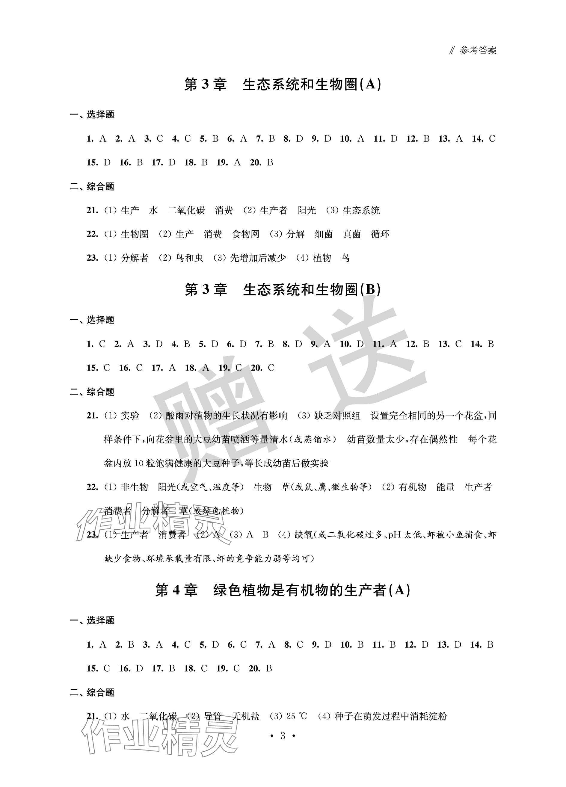注:目前有些书本章节名称可能整理的还不是很完善,但都是按照顺序排列的,请同学们按照顺序仔细查找。练习册 2023年自主学习与测评单元活页卷七年级生物上册苏科版 答案主要是用来给同学们做完题方便对答案用的,请勿直接抄袭。