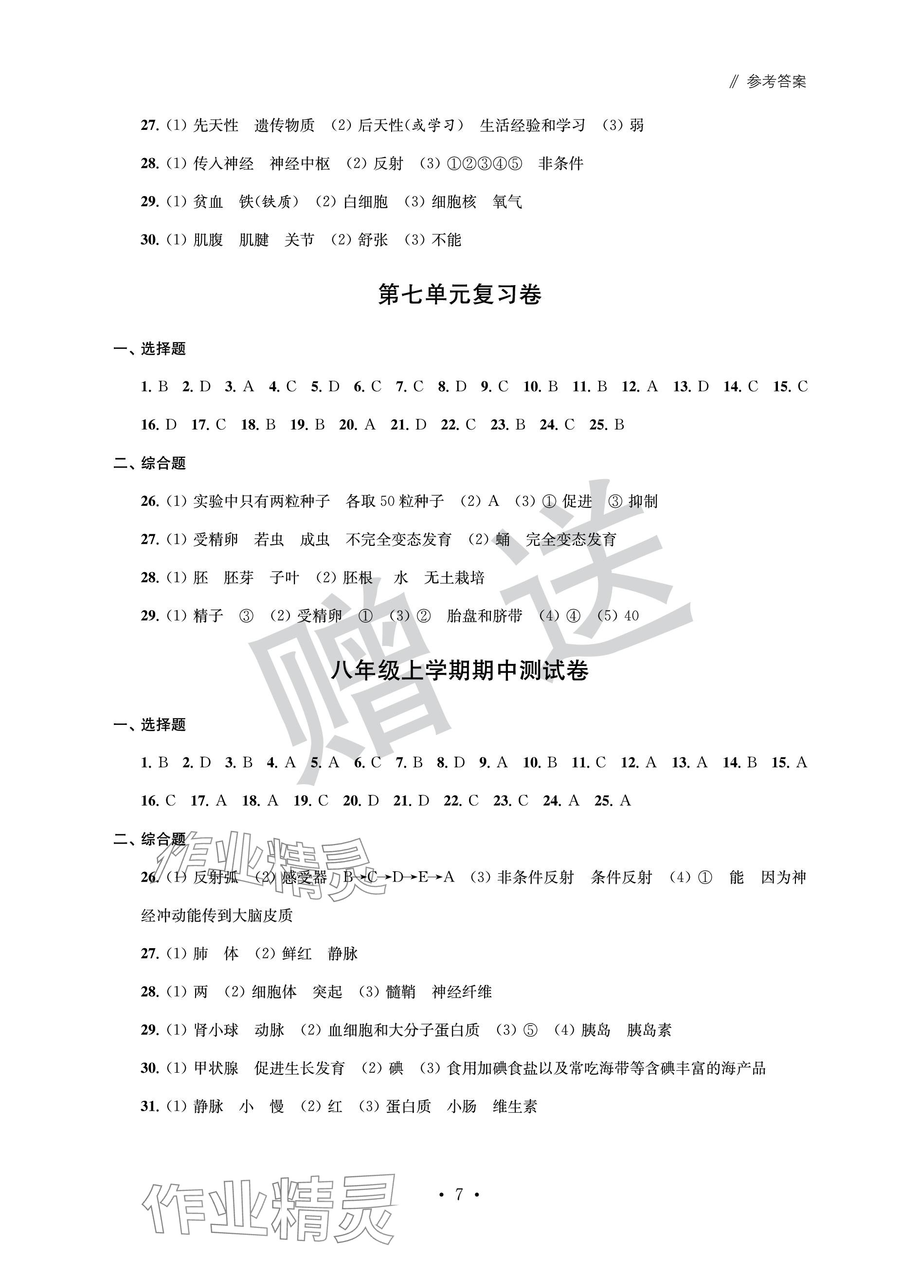 注:目前有些书本章节名称可能整理的还不是很完善,但都是按照顺序排列的,请同学们按照顺序仔细查找。练习册 2023年自主学习与测评单元活页卷八年级生物上册苏科版 答案主要是用来给同学们做完题方便对答案用的,请勿直接抄袭。